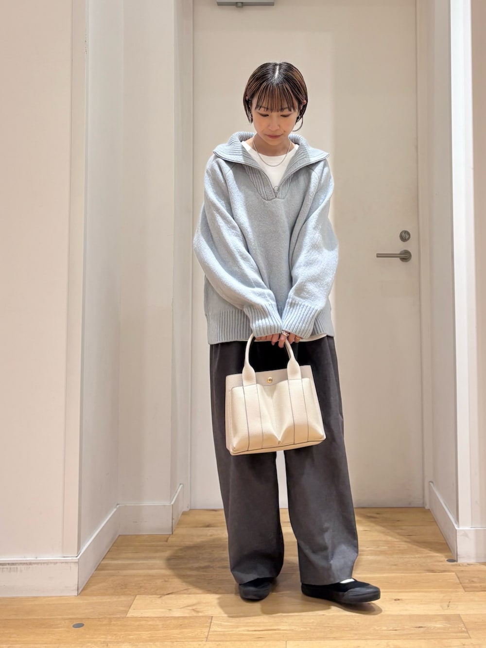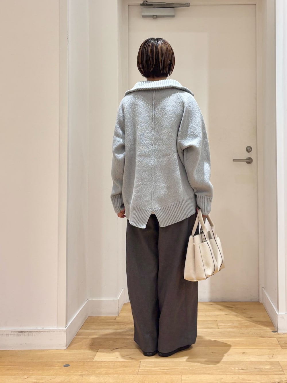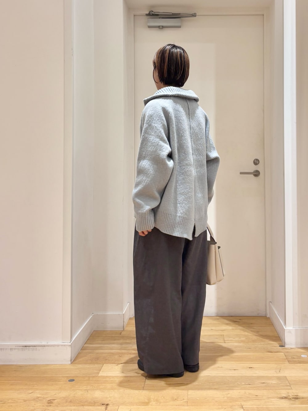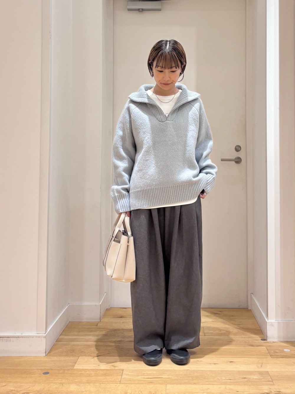 ニットは、ハーフジップなので開け具合によって雰囲気も変えて楽しめます!
