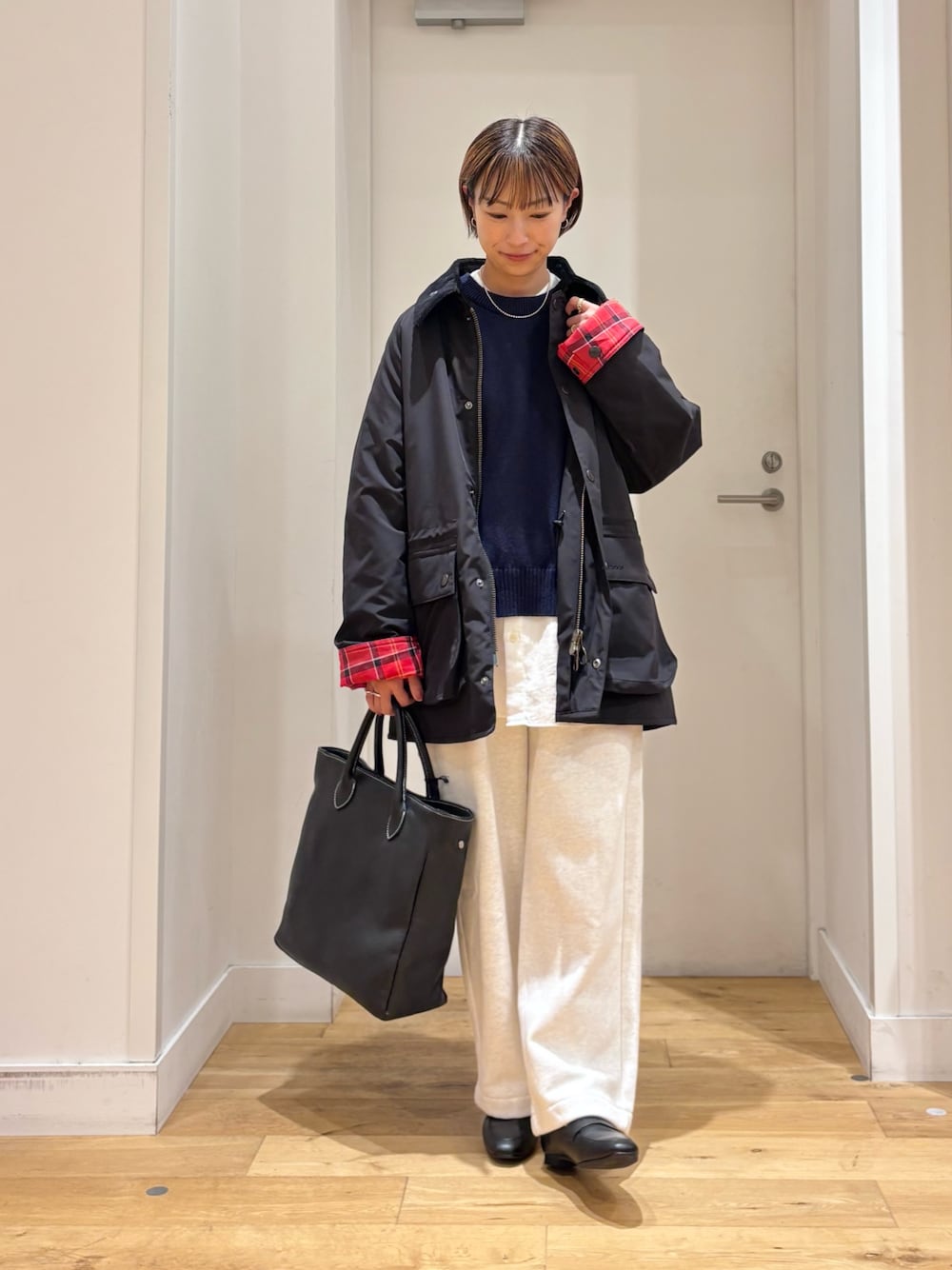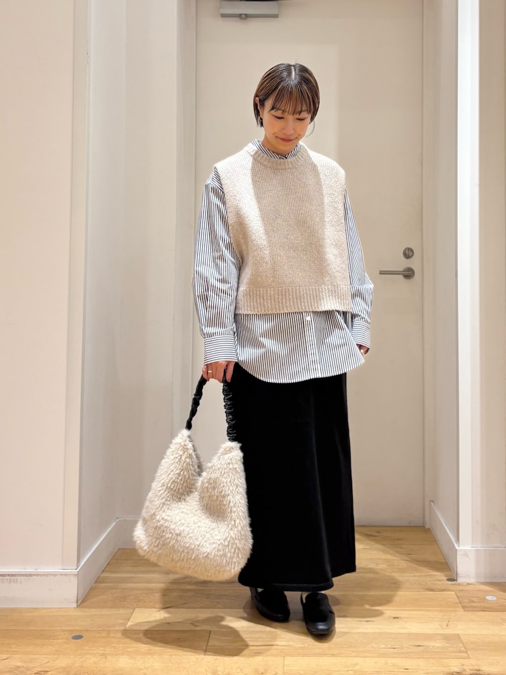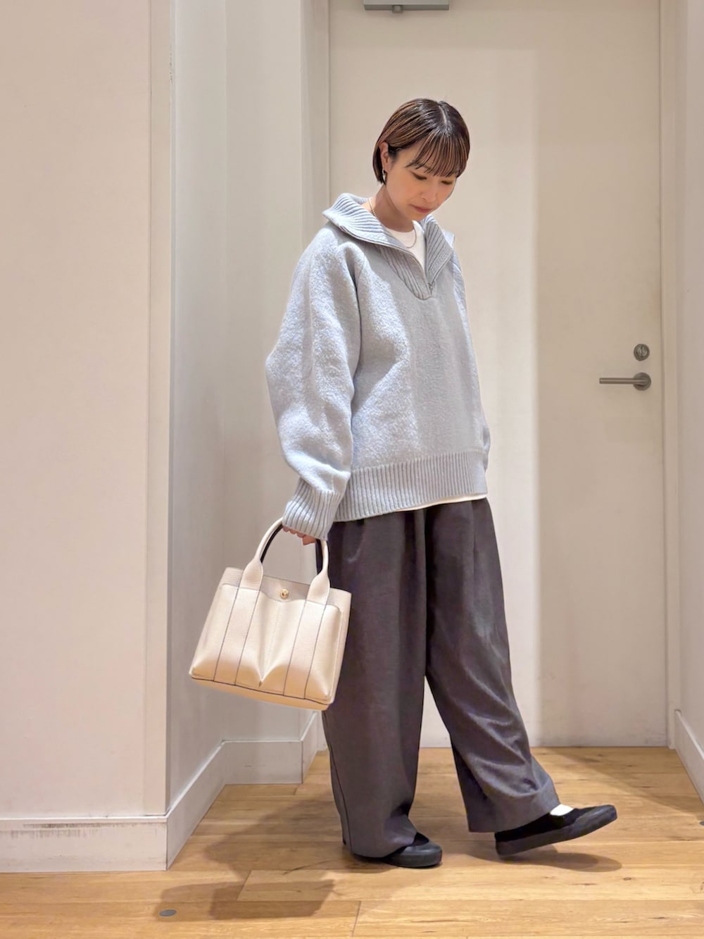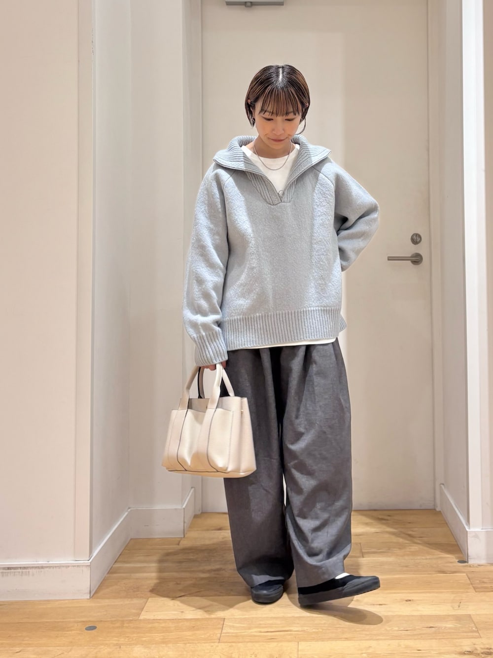 ニットは、ハーフジップなので開け具合によって雰囲気も変えて楽しめます!
