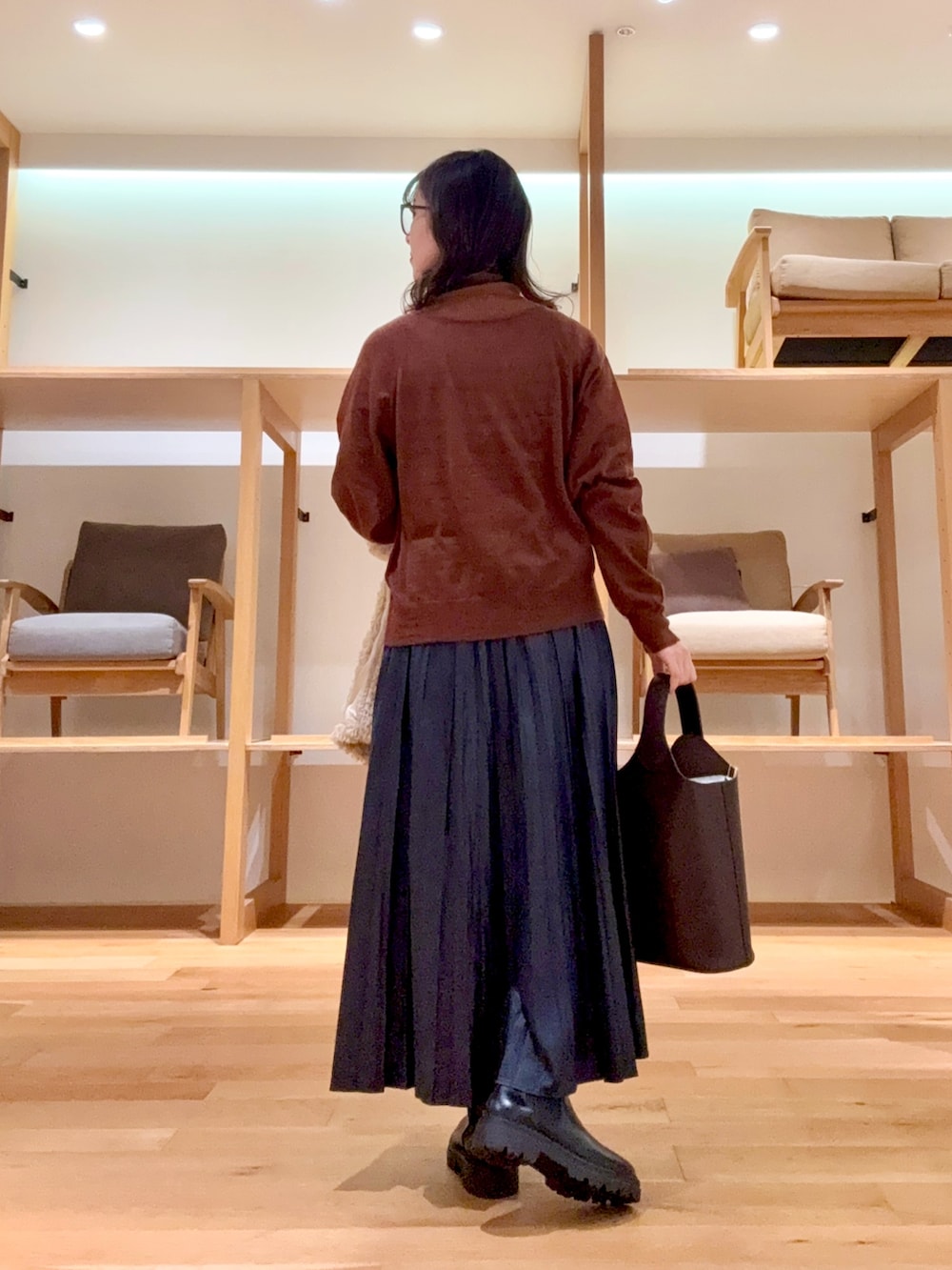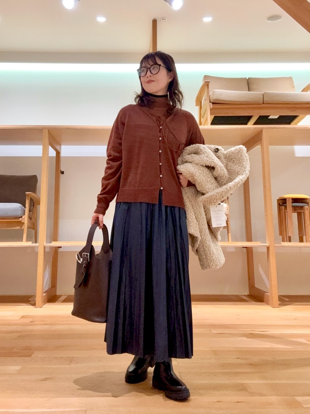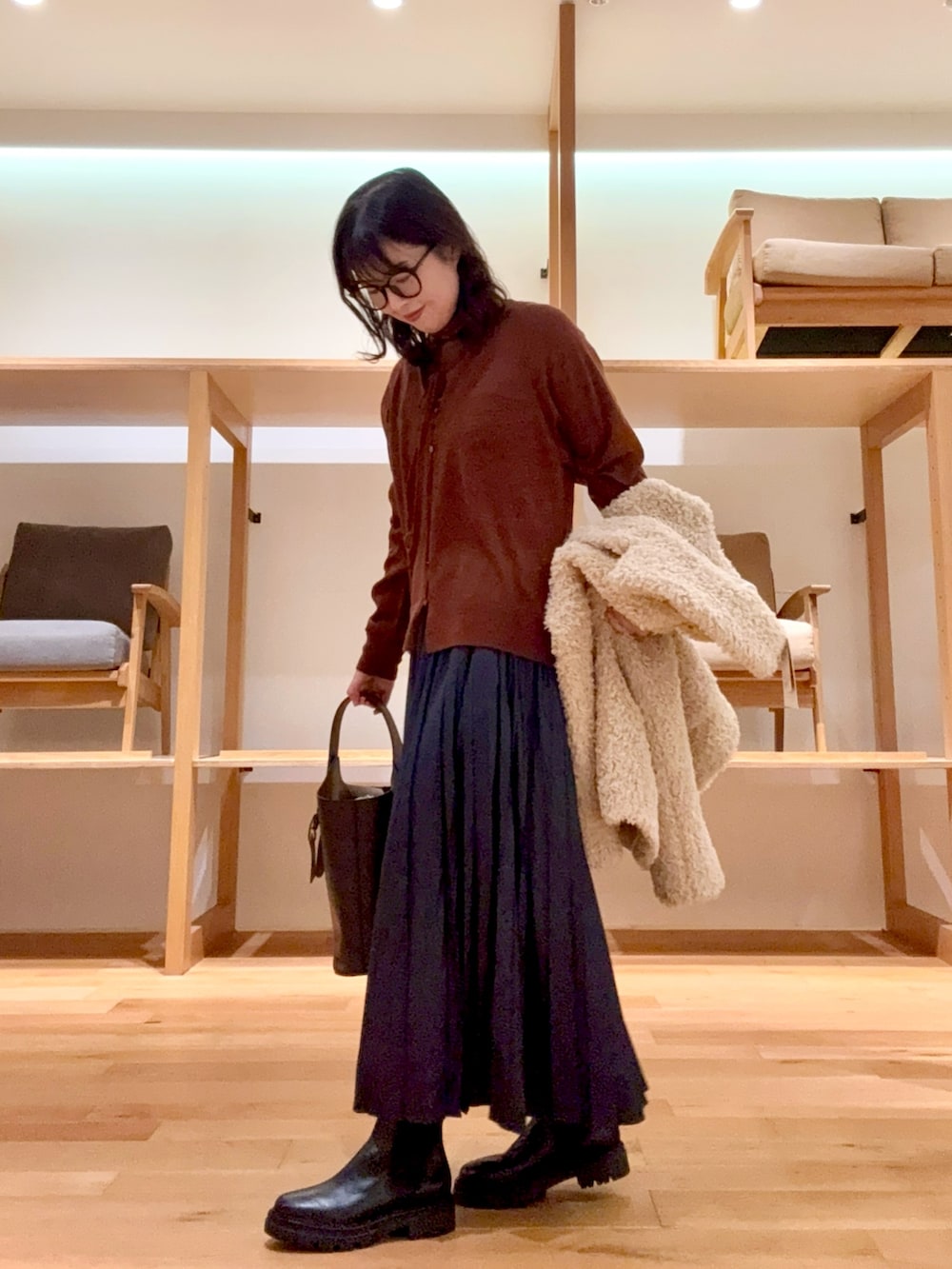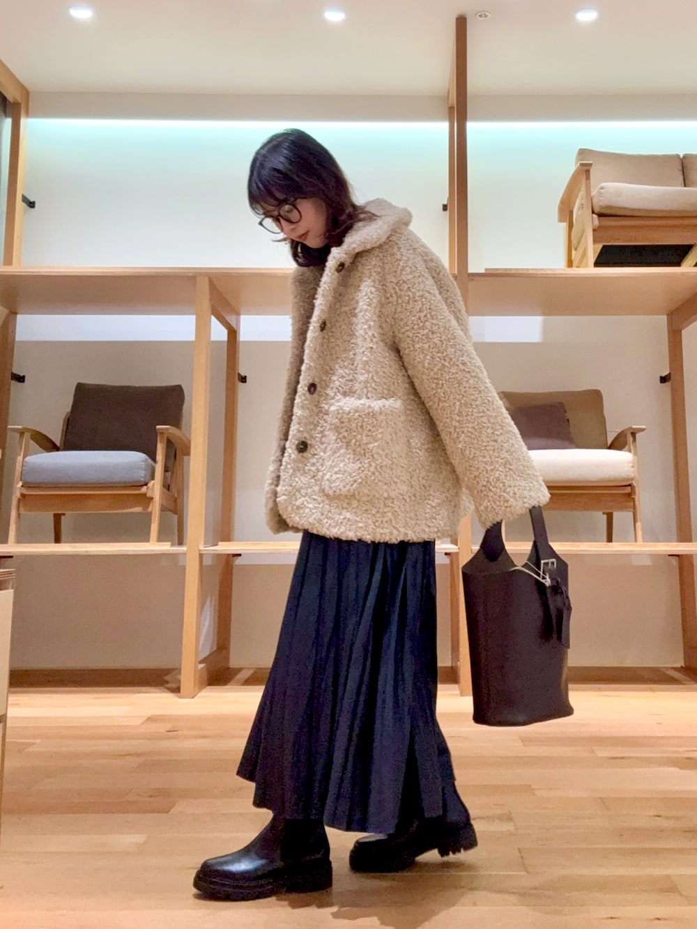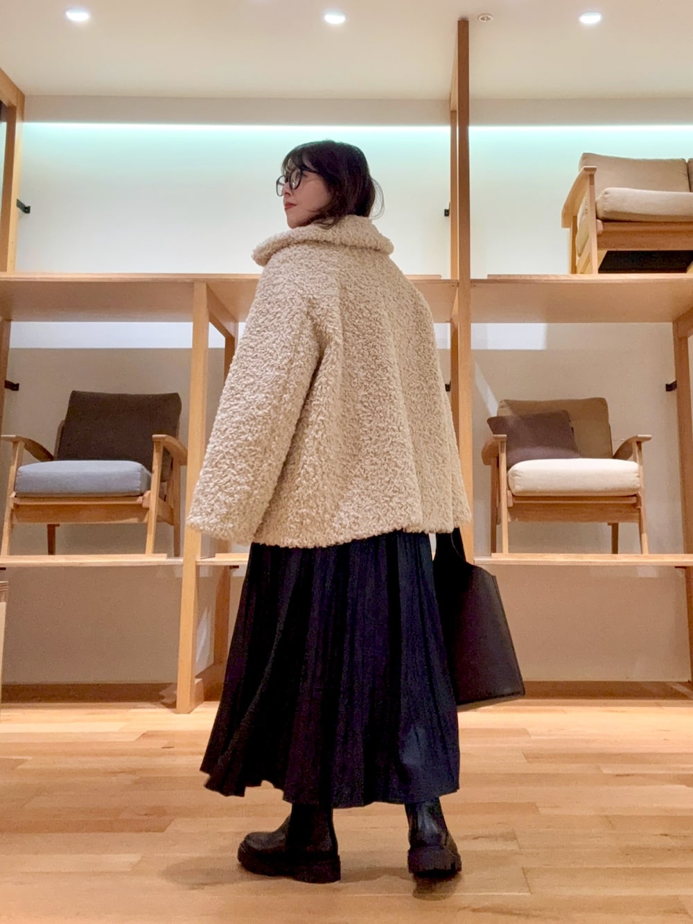 もこもこの可愛いファーコートで、綺麗めカジュアルスタイルを作りました🐏✨