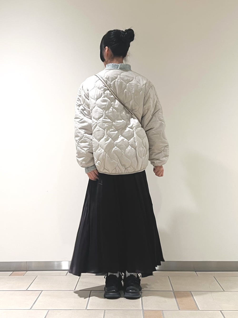 スカートはサテンの上品な雰囲気+プリーツデザインできれいめにもカジュアルにも合わせやすいかなと思います!!!◎