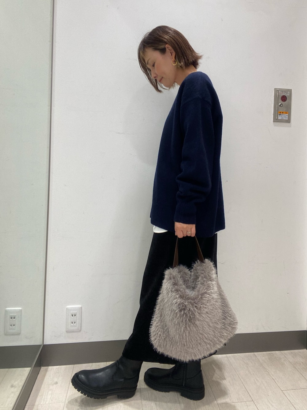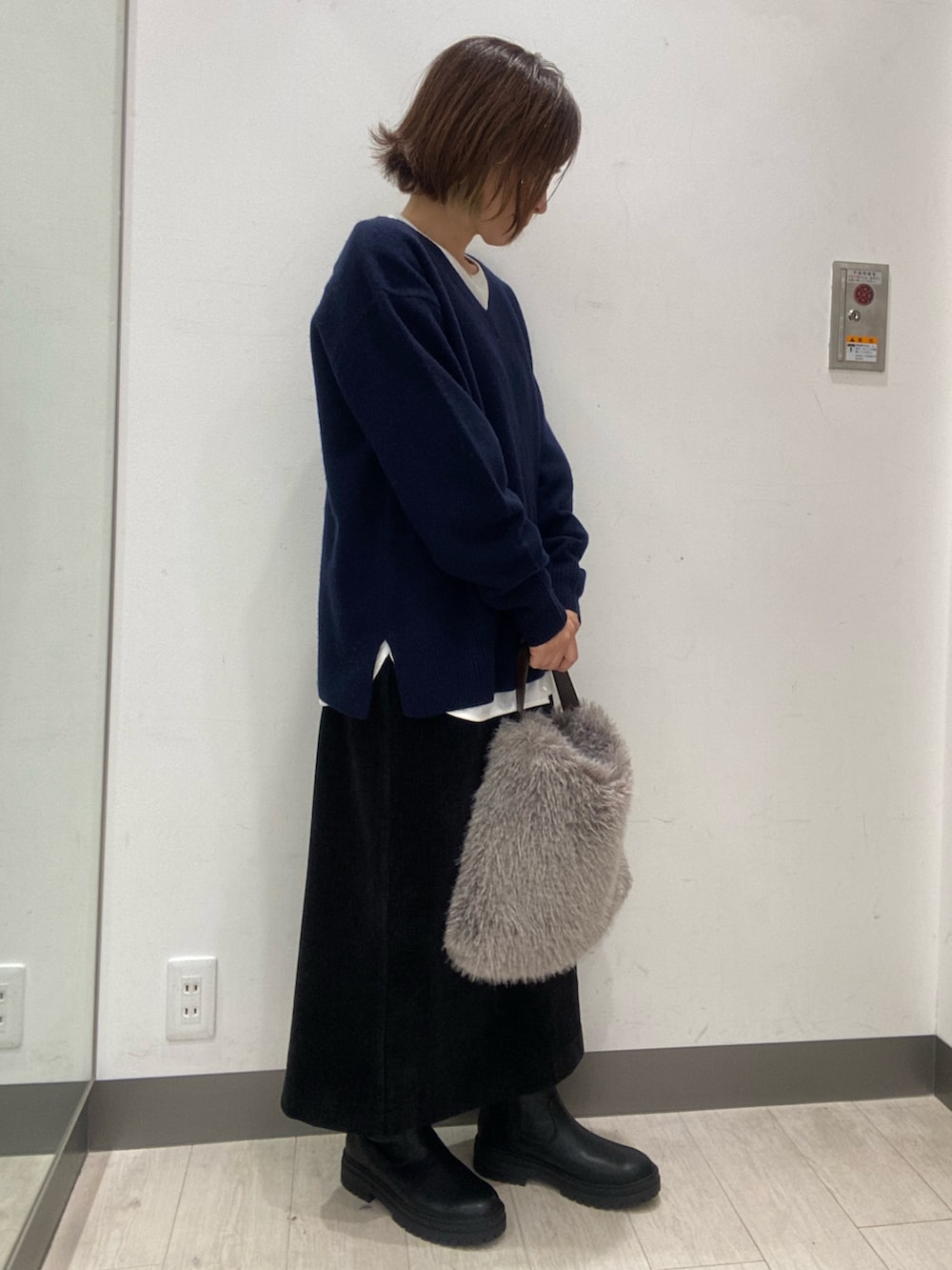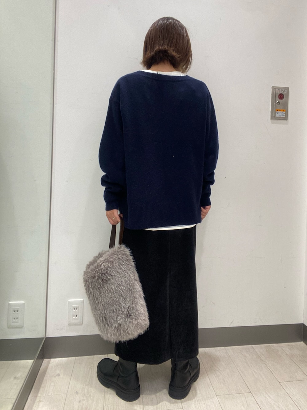 スカートは、ベロアワッシャーが程よい光沢感で、Iラインがスッキリとブーツとの相性も○です!