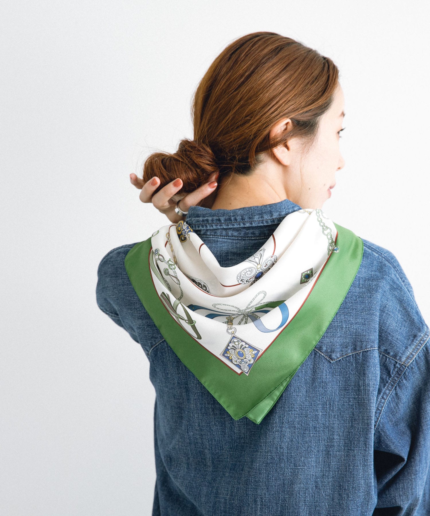 AULENTTI 大判ヴィンテージチェーン柄スカーフ