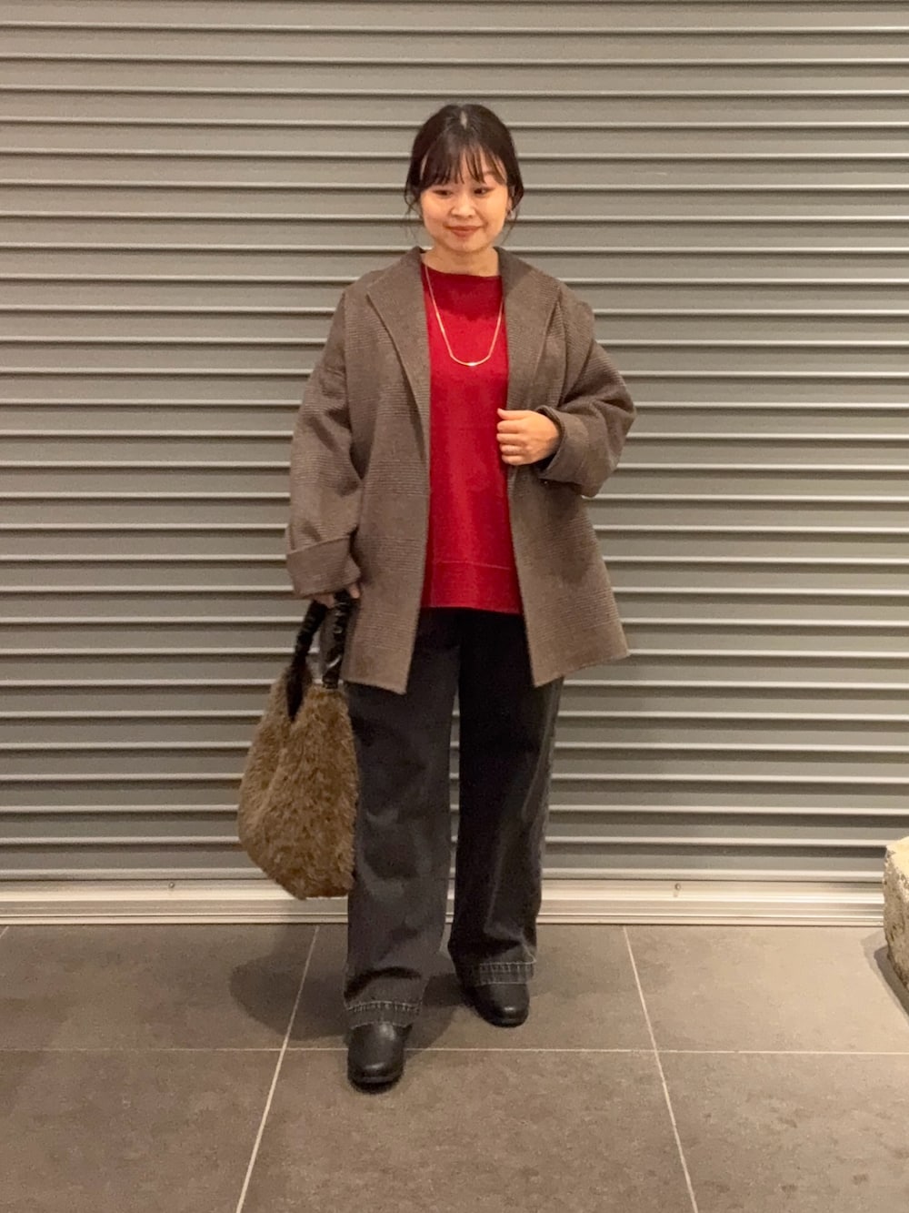 ウールリバーコートはとても軽くさらっと着れます。秋冬らしいチェックカラーおすすめです。