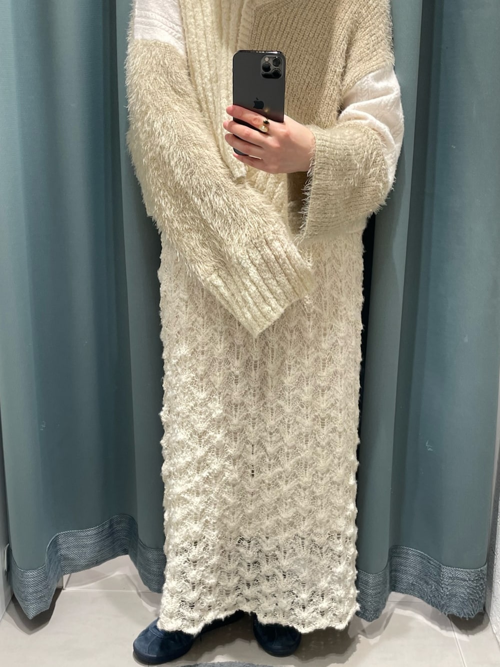 クロシェニットスカートのぽこぽこ感かわいいです!!インナーペチスカート付き、スリットも入ってます。