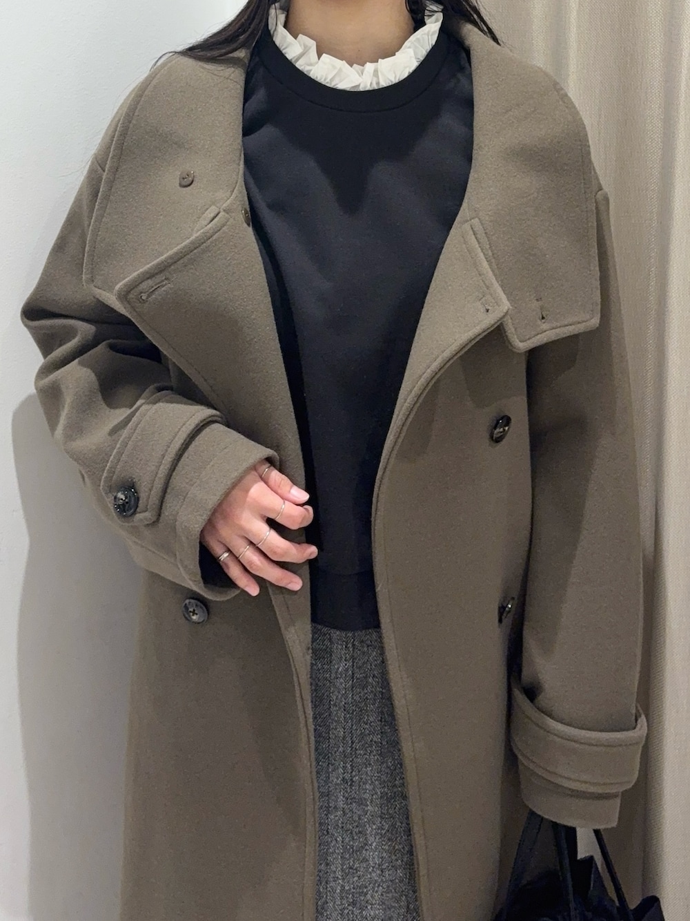アウターは見た目よりも軽く、表面感も柔らかく優しい印象で着ていただけます!