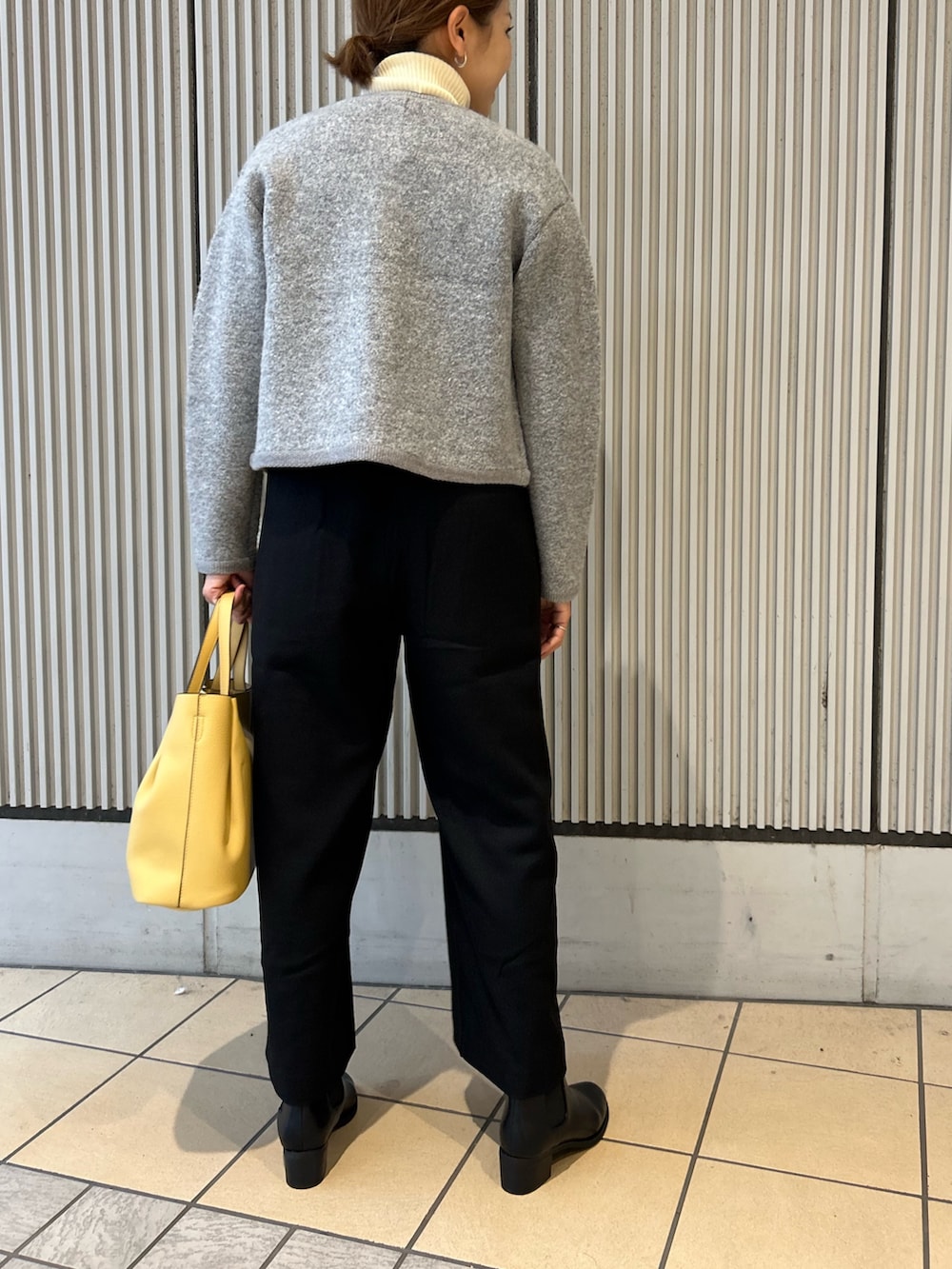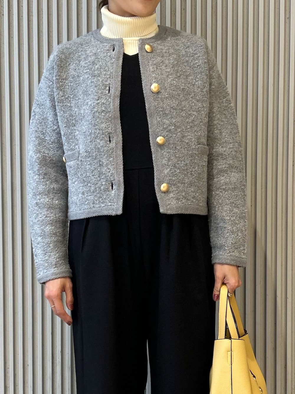 羽織っているニットカーディガンもキチッとした雰囲気を纏う事ができるので1着あるとお仕事や学校行事にも便利ですよ〜!!