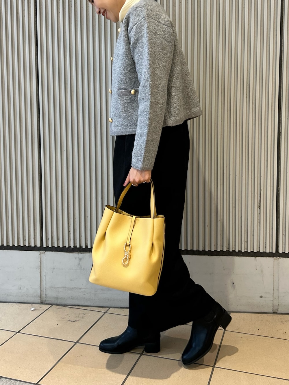 サイズは嬉しい2サイズ展開です!Mサイズも元々丈が短めなので、私はヒールブーツを合わせてバランスを取ったところがポイントです🙆♀️実際に見るとツイードのような生地感なので、季節感をしっかり取り入れてお召し頂けます。