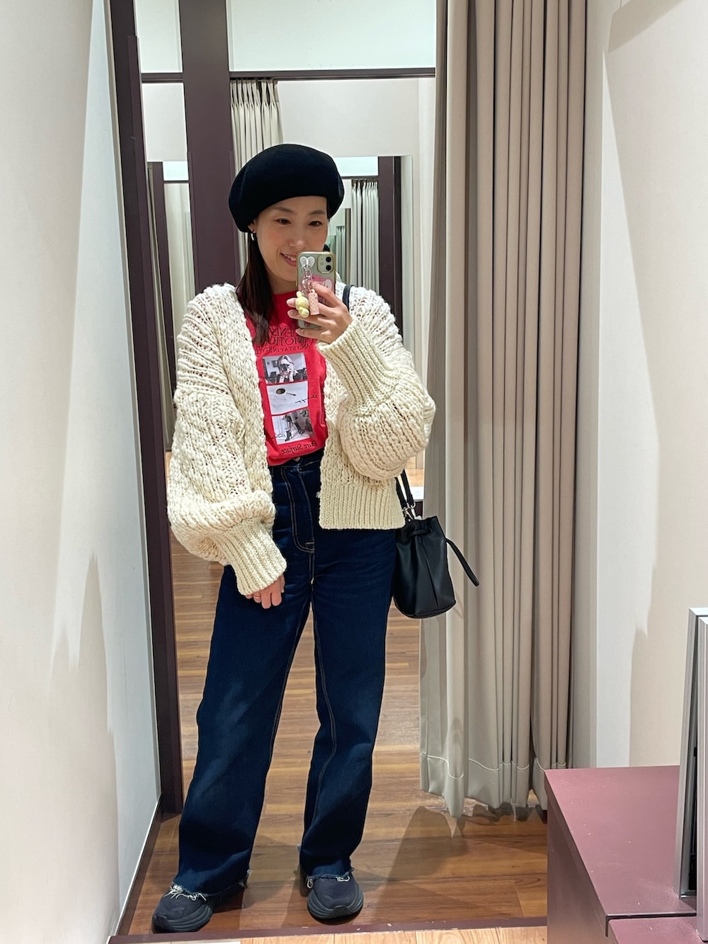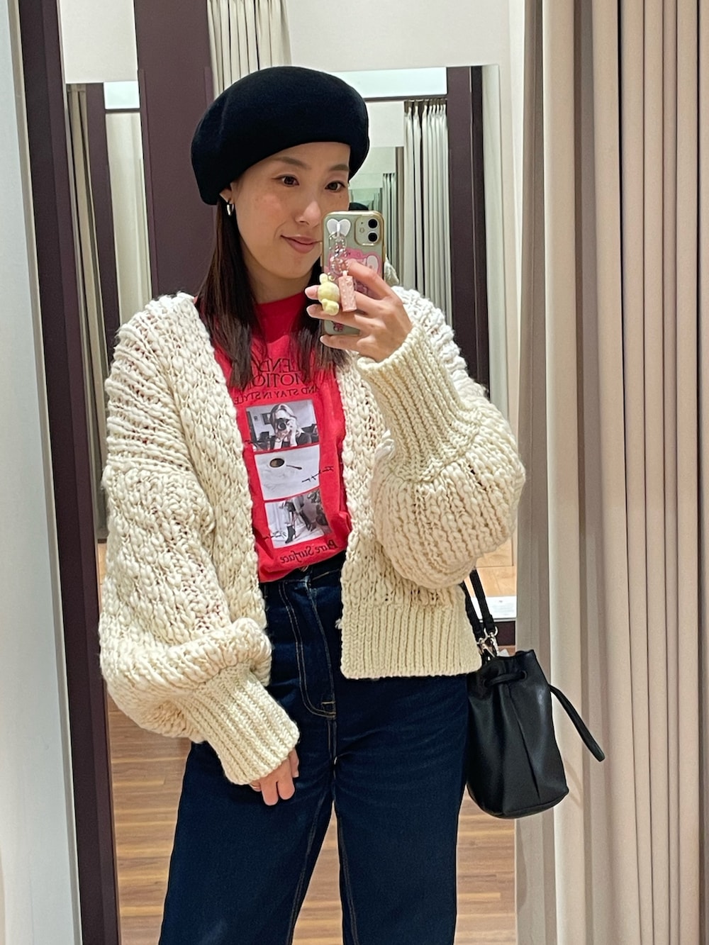 カーディガンは毛糸が可愛いボリュームニットです♡