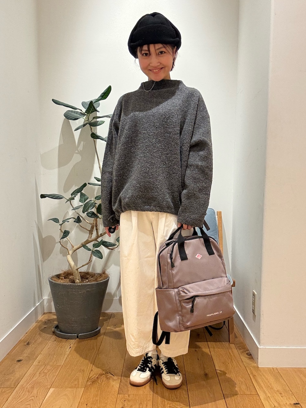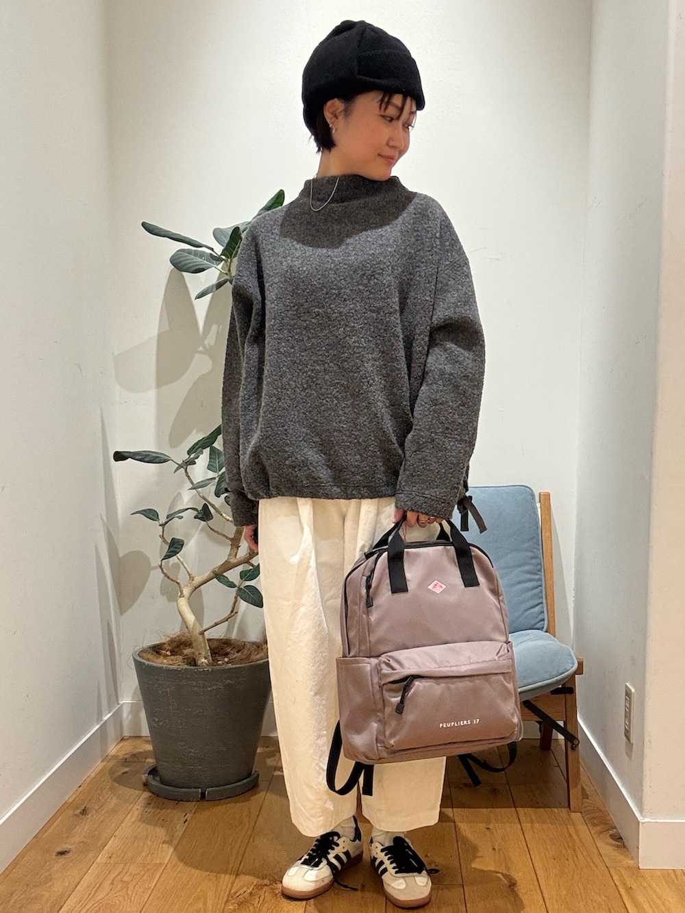 トップスはウール素材なのでとてもあたたかいです。ほどよいハイネックが首元をすっきり見せてくれます。