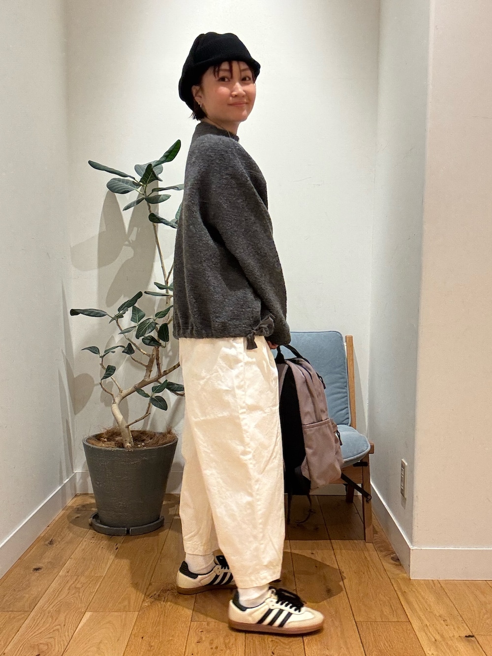 パンツもテーパードになっているので短めのトップスとも相性がいいです。