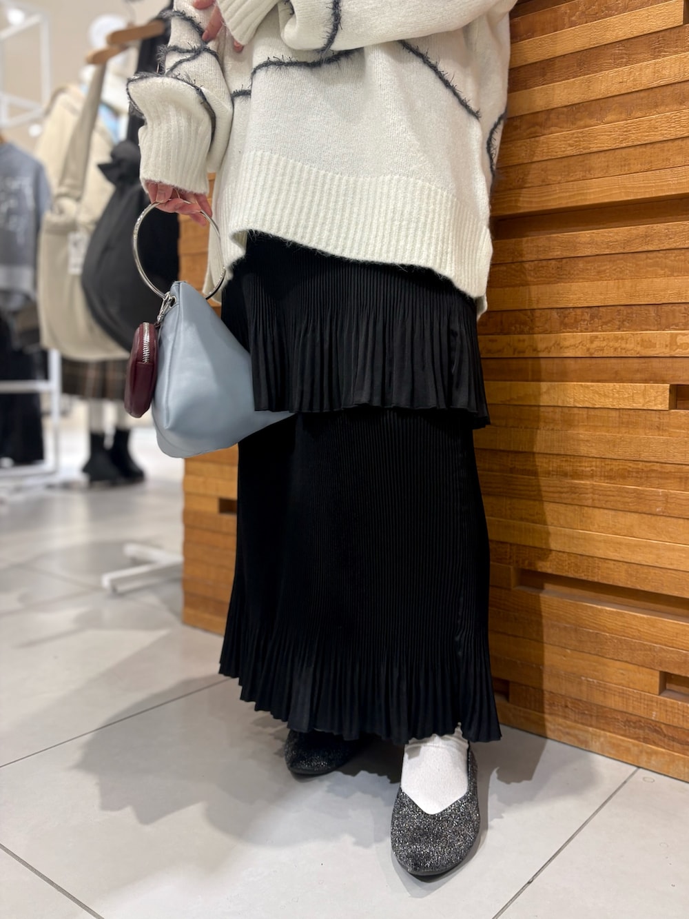 シャギー素材の曲線ラインが、着こなしのアクセントになって可愛いです🤍🖤