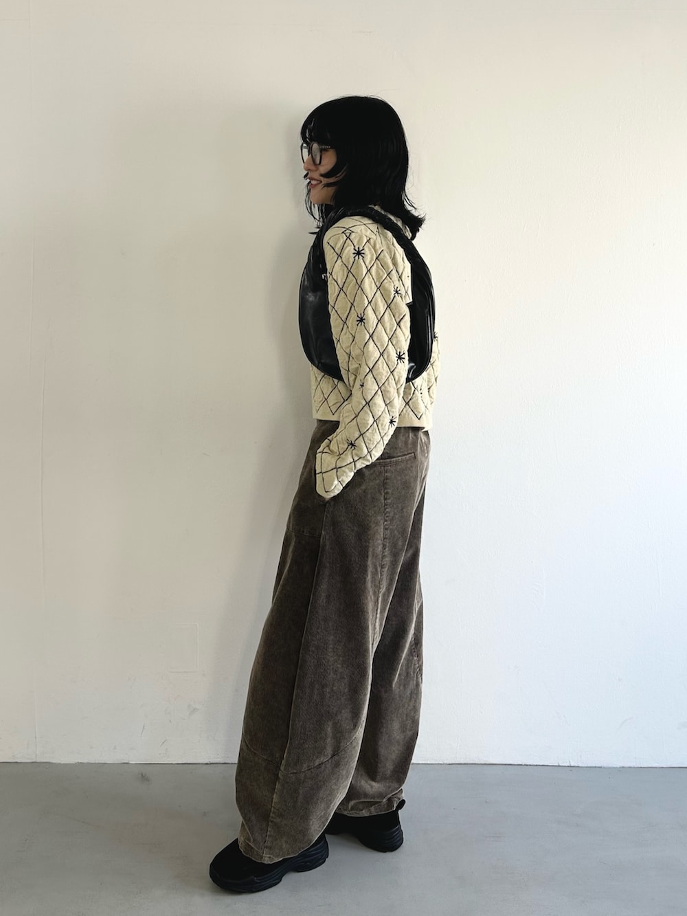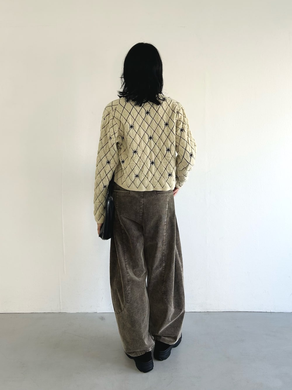キルティングカーディガンに、コーデュロイパンツを合わせて着てみました、