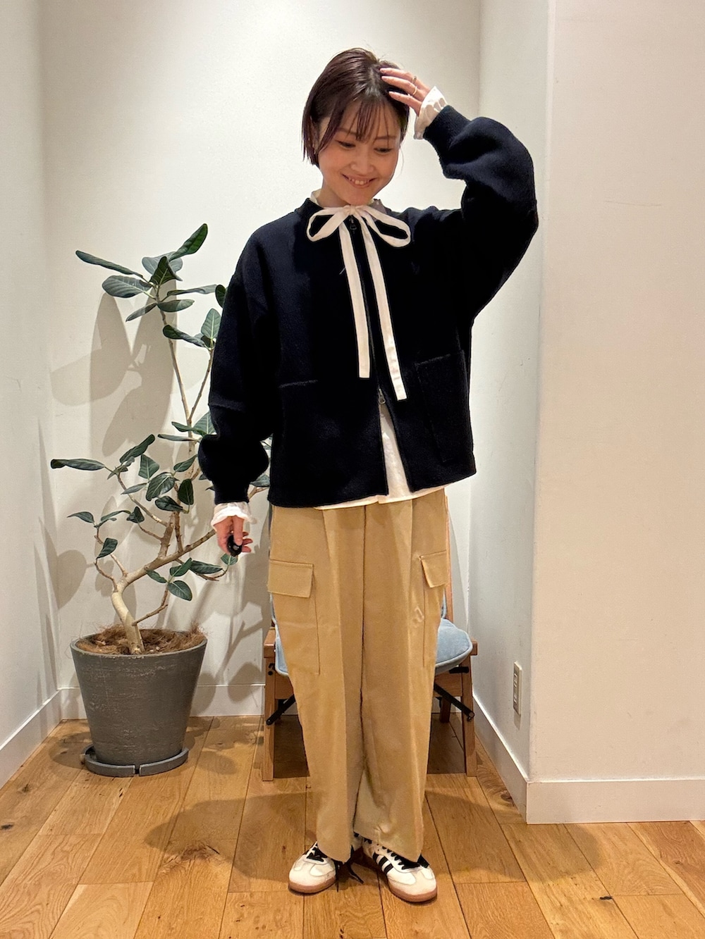 いま時期はアウターとしても、もう少し寒くなったらトップスの主役としても使えるアイテムです。肌触りがよく着心地がいいですよ。