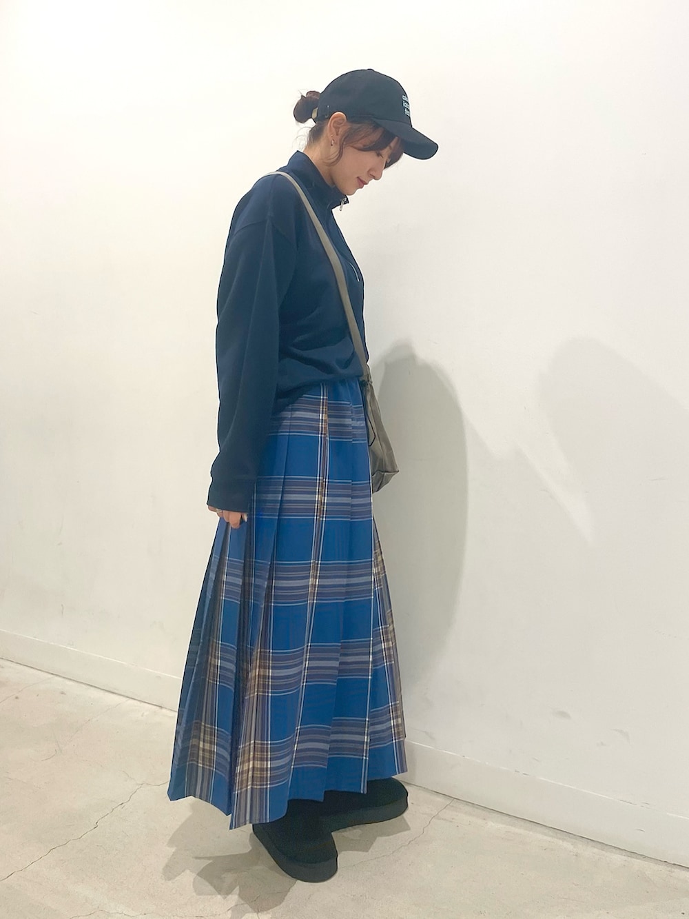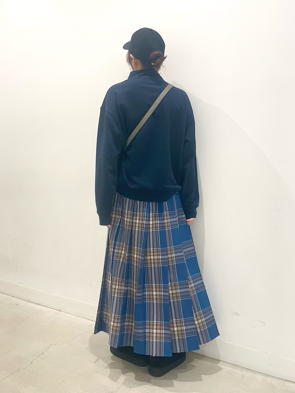 存在感のあるプリーツスカートもネイビーやブラックと合わせれば中和されるのでチャレンジしやすいです◎