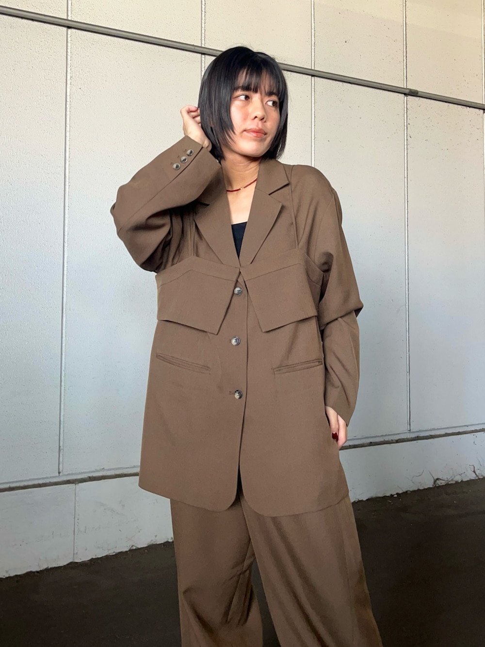 ビスチェがセットになったジャケットなので、シンプルなジャケットに可愛さが足されて普段使いもしやすくなっています◎