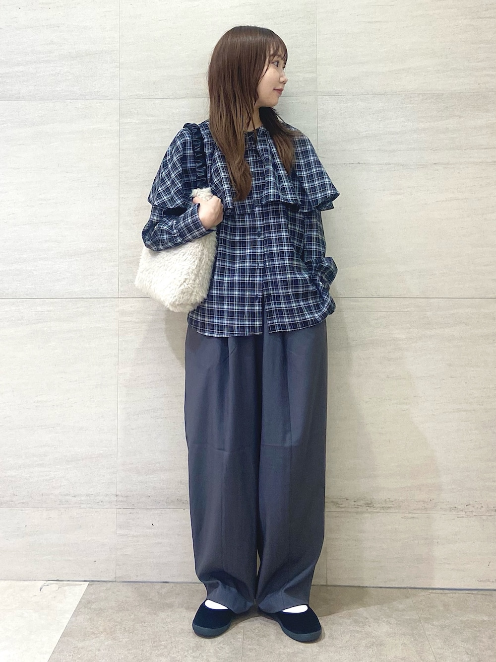 ブラウスは張り感がなく落ちてくれるので、可愛らしすぎず大人に着ていただけます!