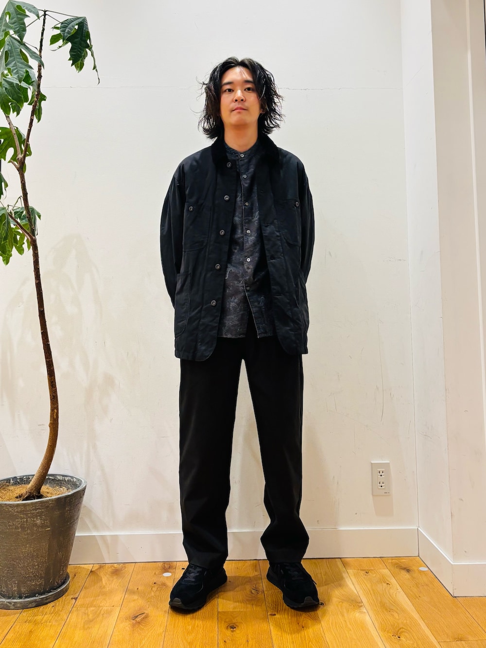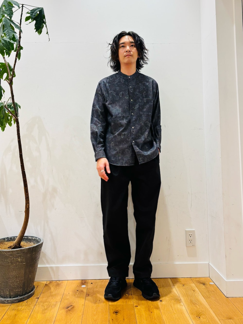 今回は、ブラックトーンですがシャツでペイズリー柄をアクセントに選んでみました。