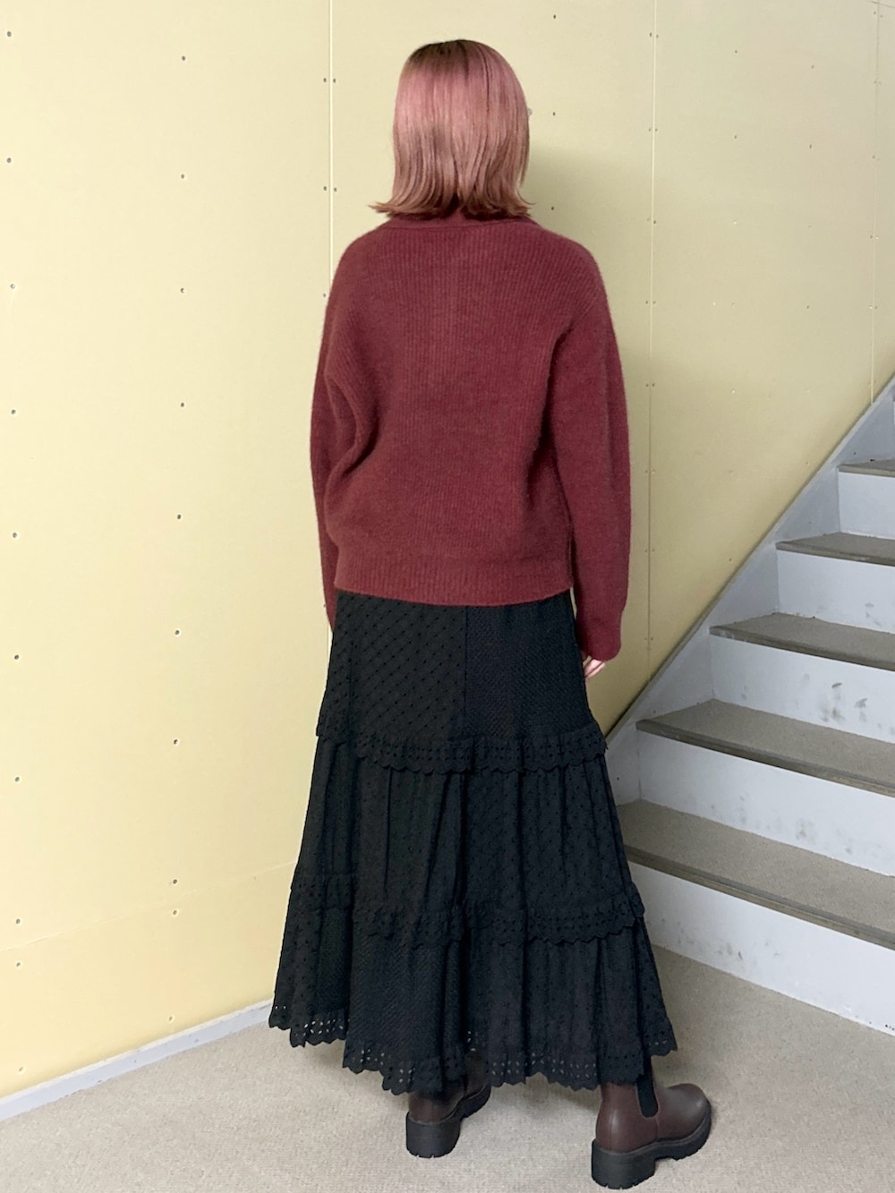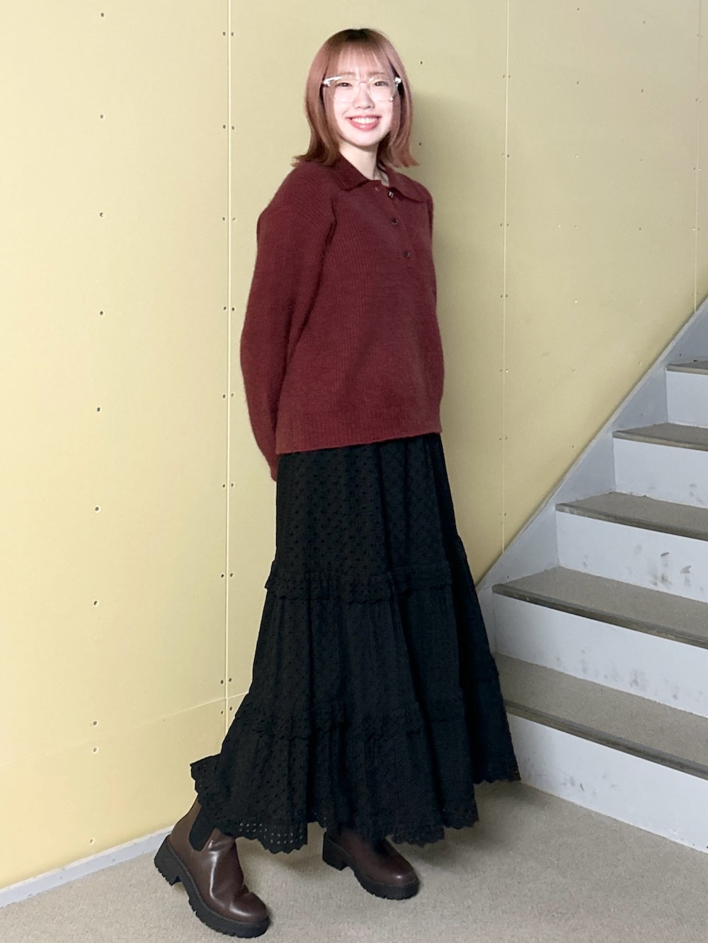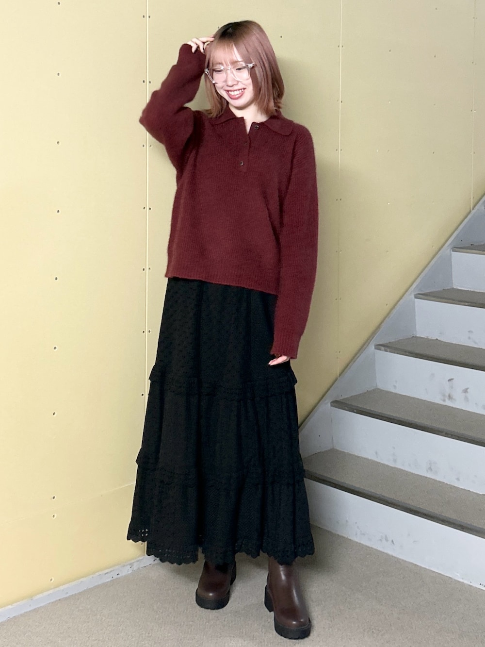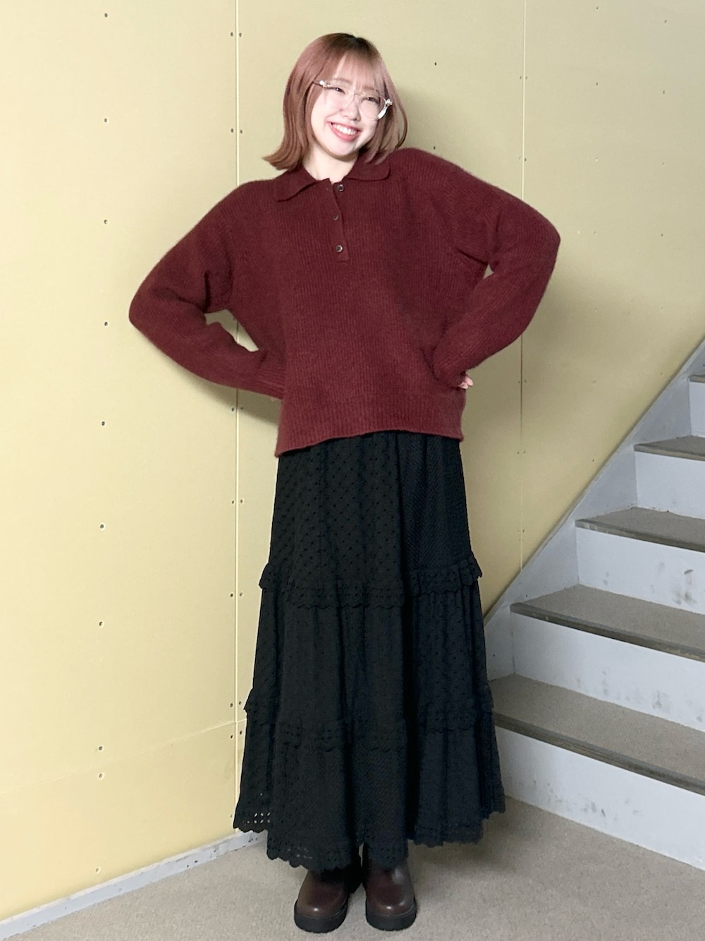 ニットはトレンド感満載の襟付きです!肌触りがとっても良いので、ぜひ店頭でお試しください🫶🫶