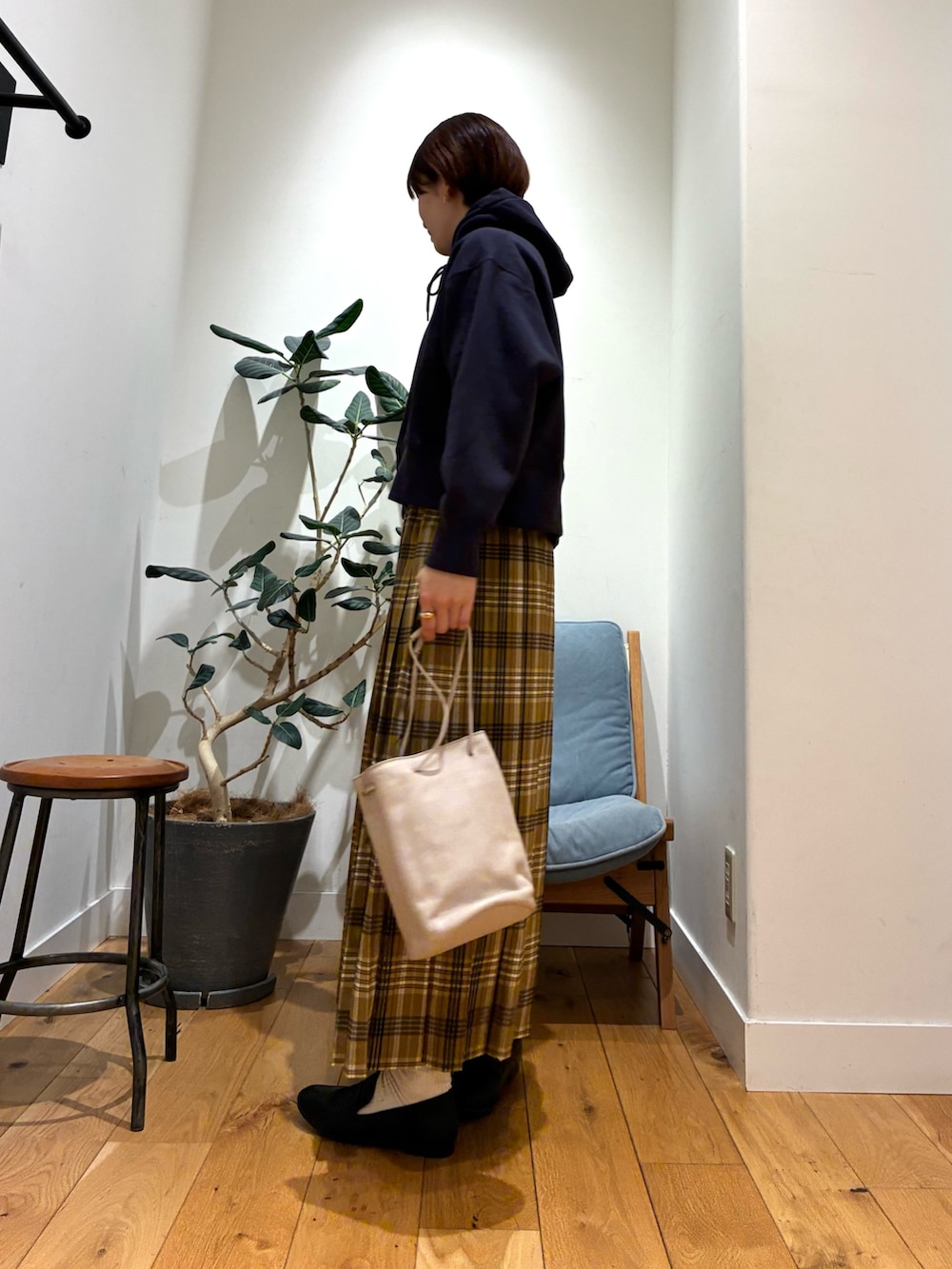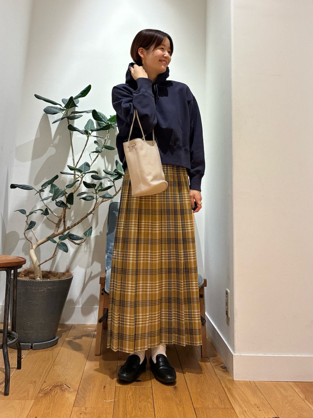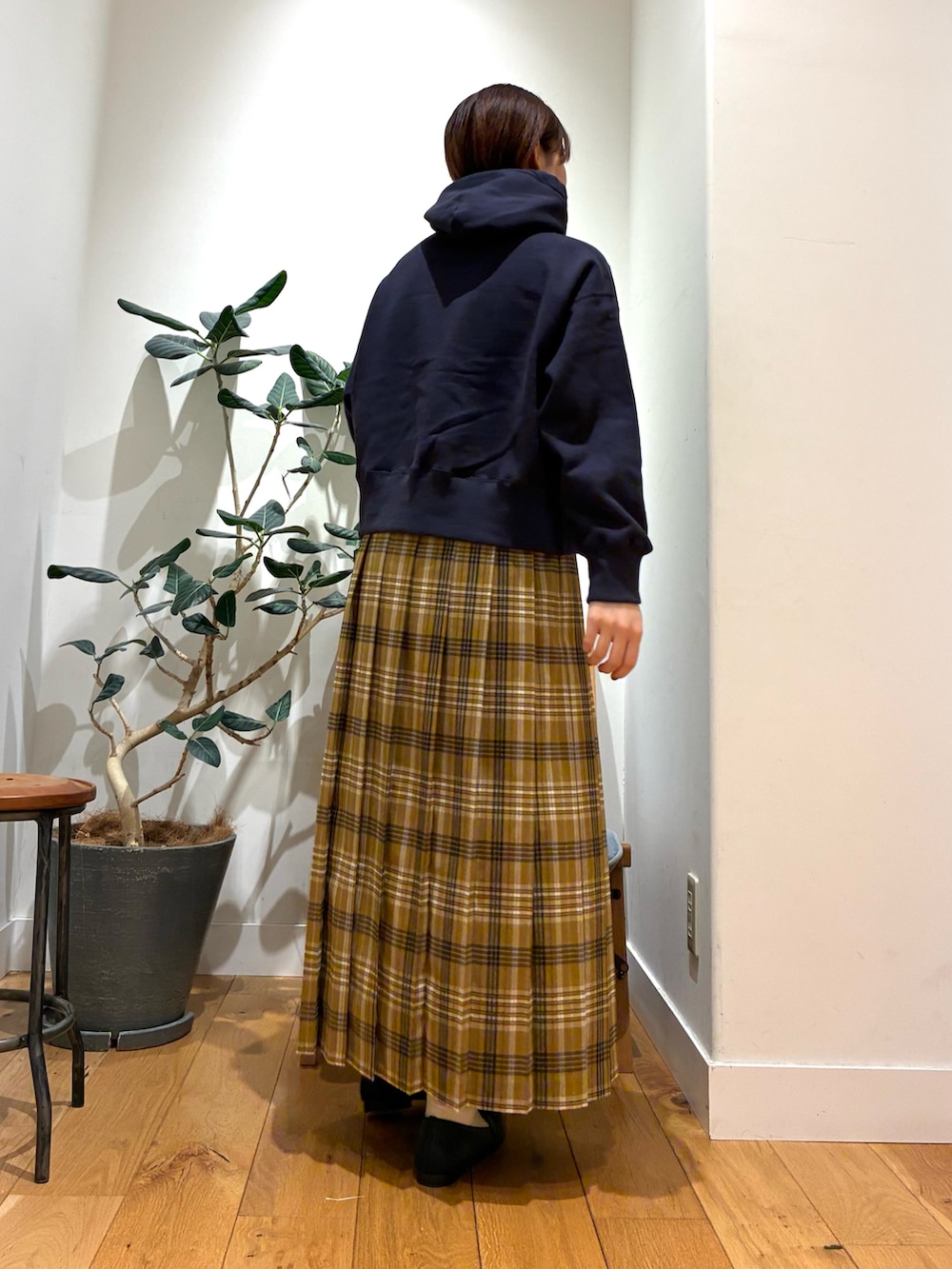 プリーツスカートは、はっきりとした色で、存在感があり、身体のラインを拾わず、程よい広がりでシルエットが良すぎますね〜