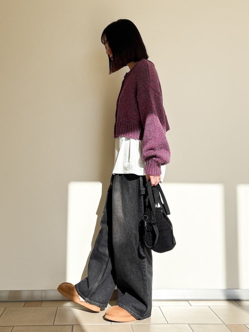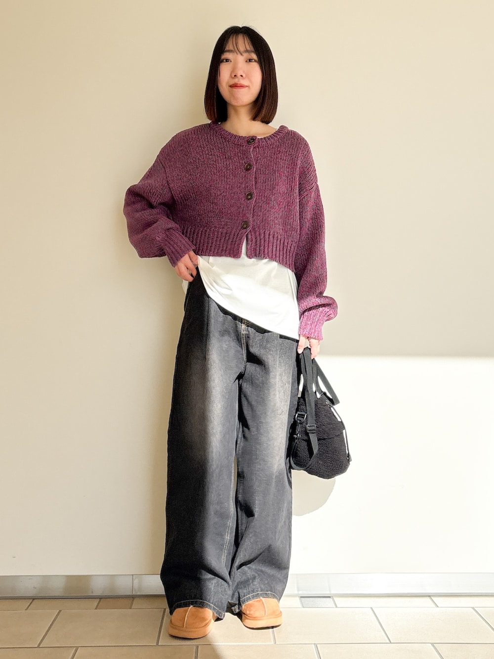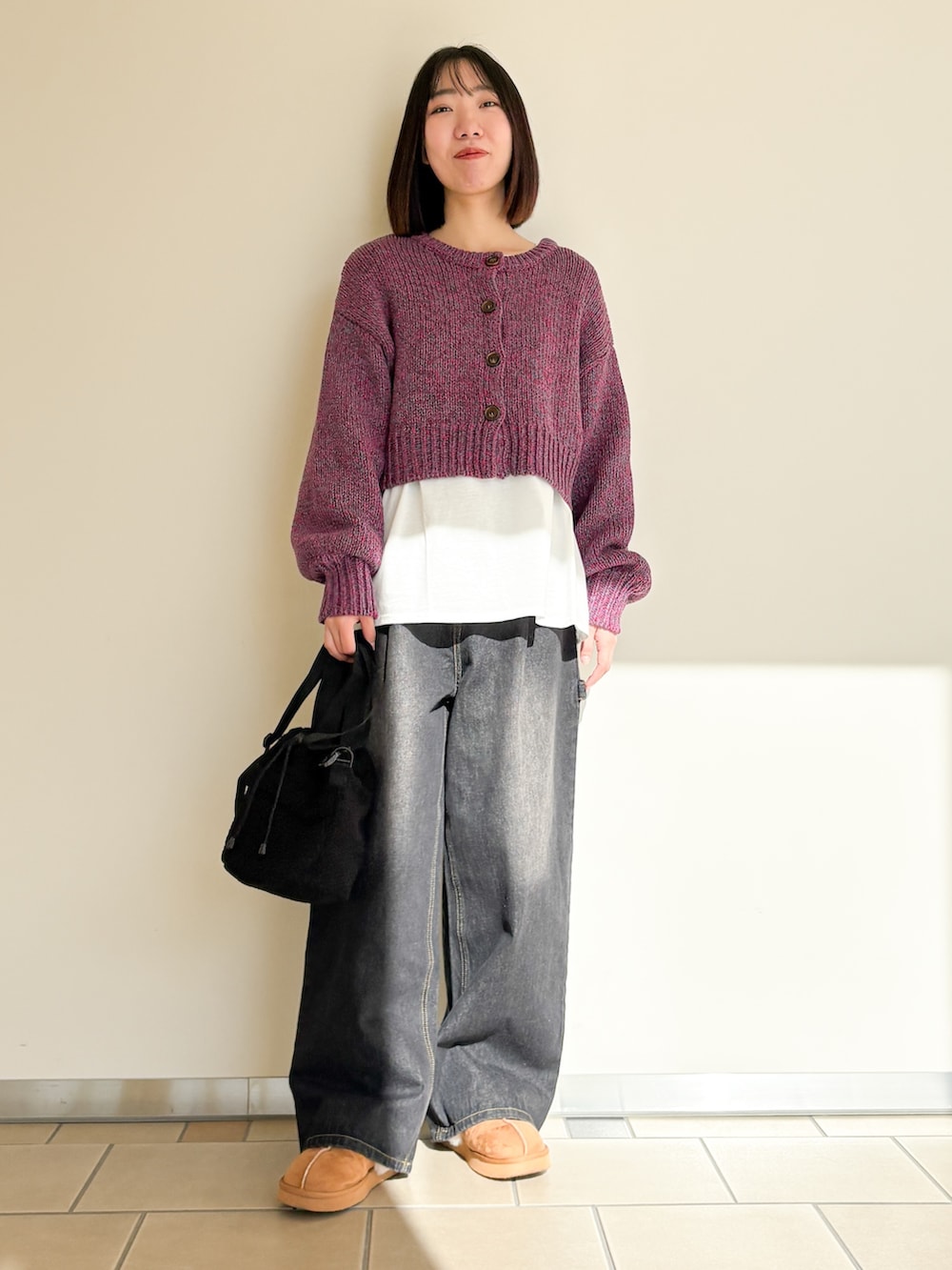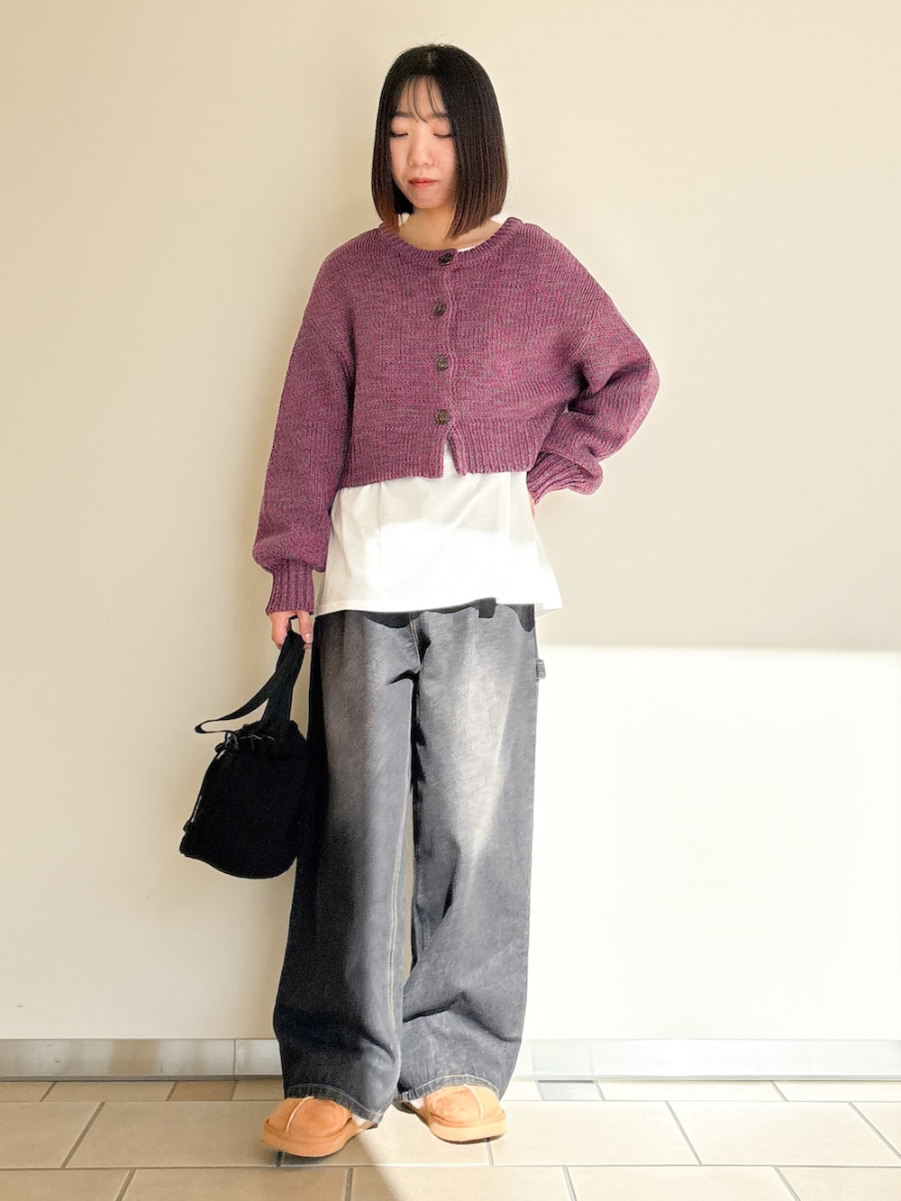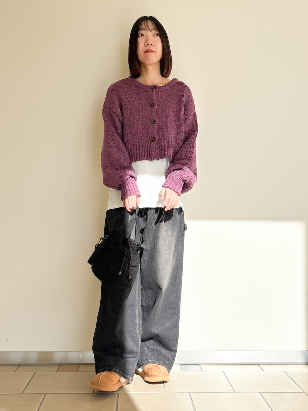 ショート丈なのでロンTをレイヤードしてカジュアルスタイルに♩