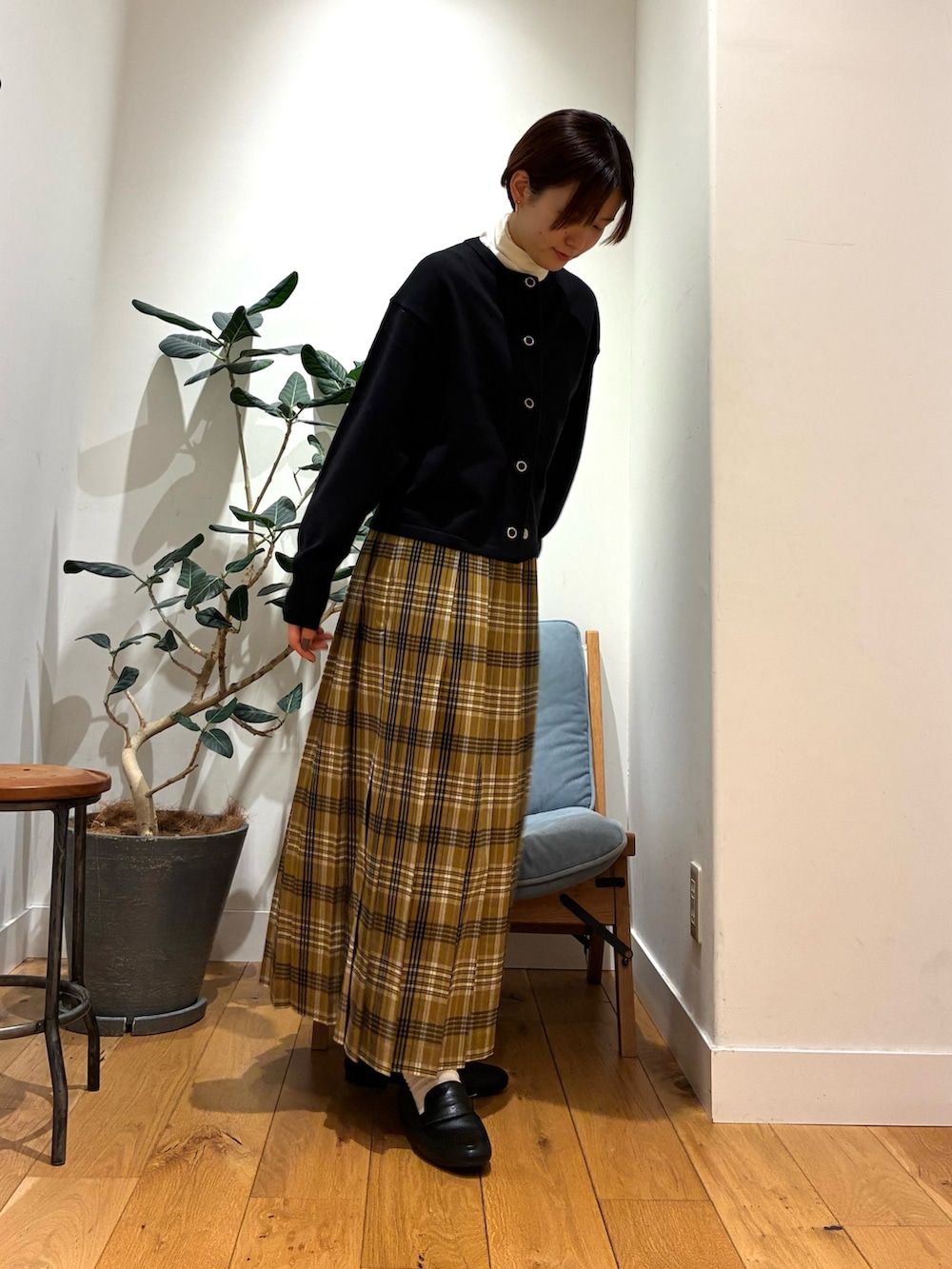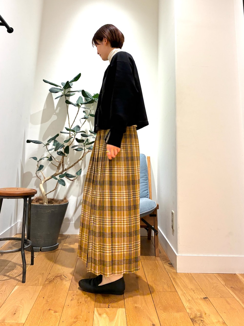 このプリーツスカート、シルエット良すぎますよね、スカートを履いて、鏡を見るだけでテンション上がります⤴︎⤴︎
