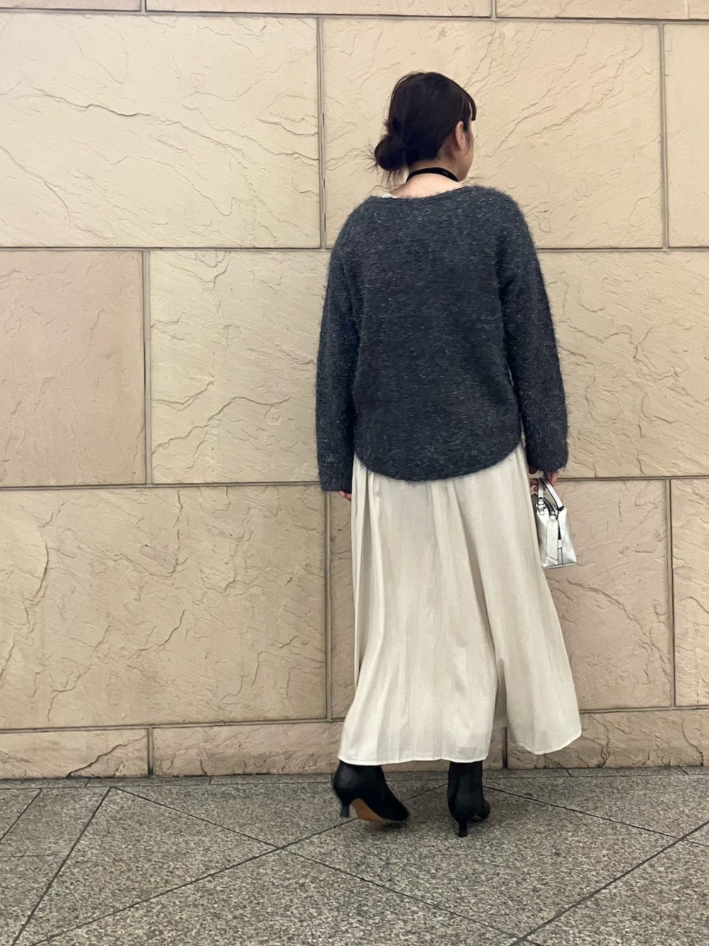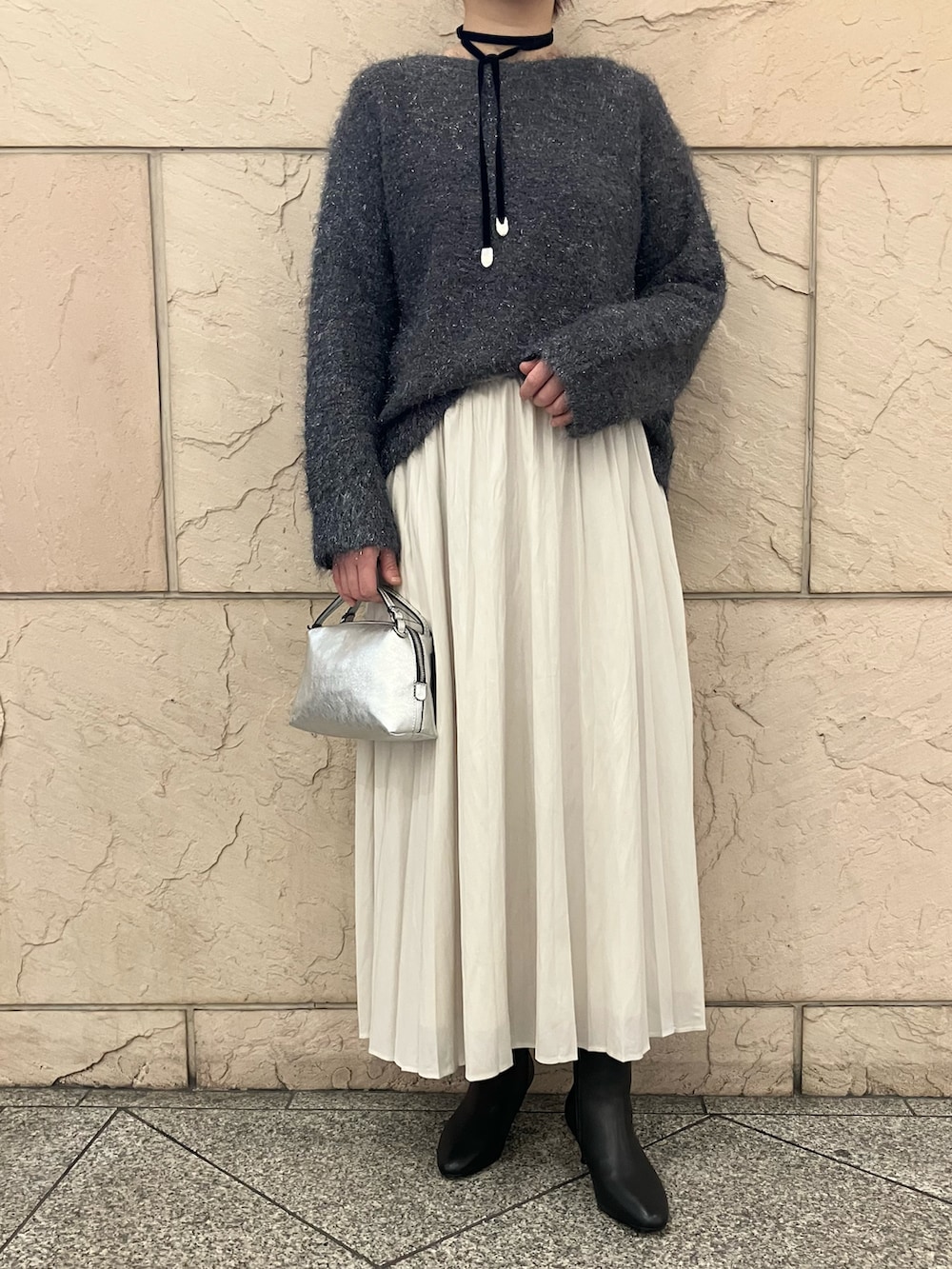 ラメシャギーニットは実物はもう少しキラキラしていて1着で主役になります。