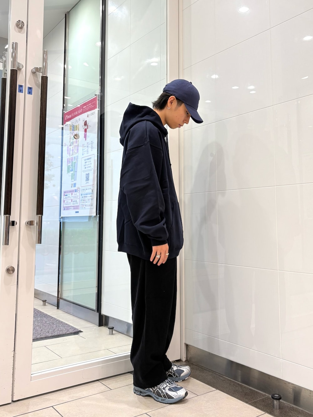 ラフなパンツとオーバーサイズなパーカーを使っただけなのにこんなにも決まるのはさすがWIDE DADです。