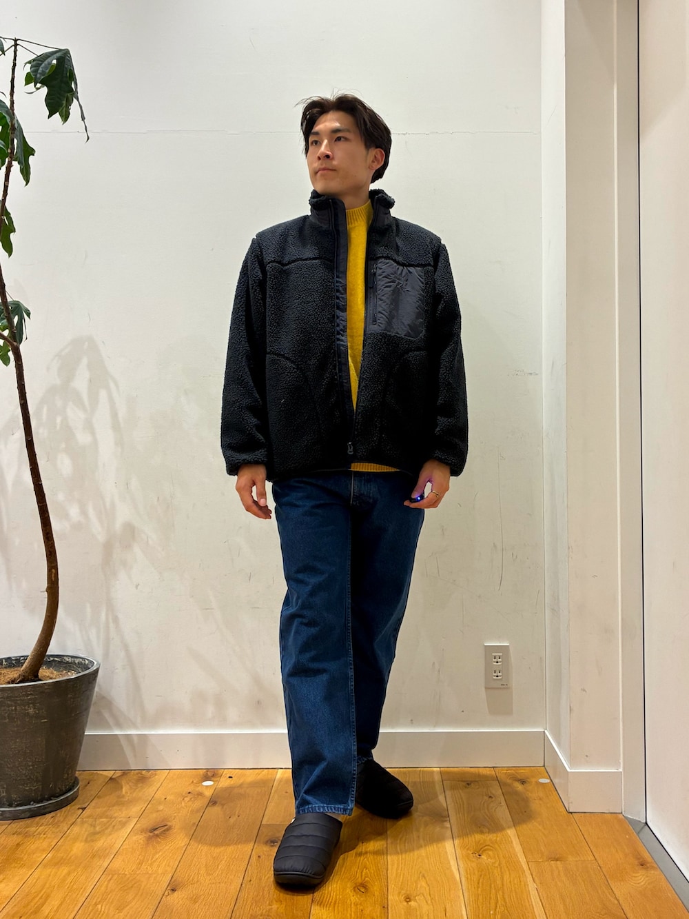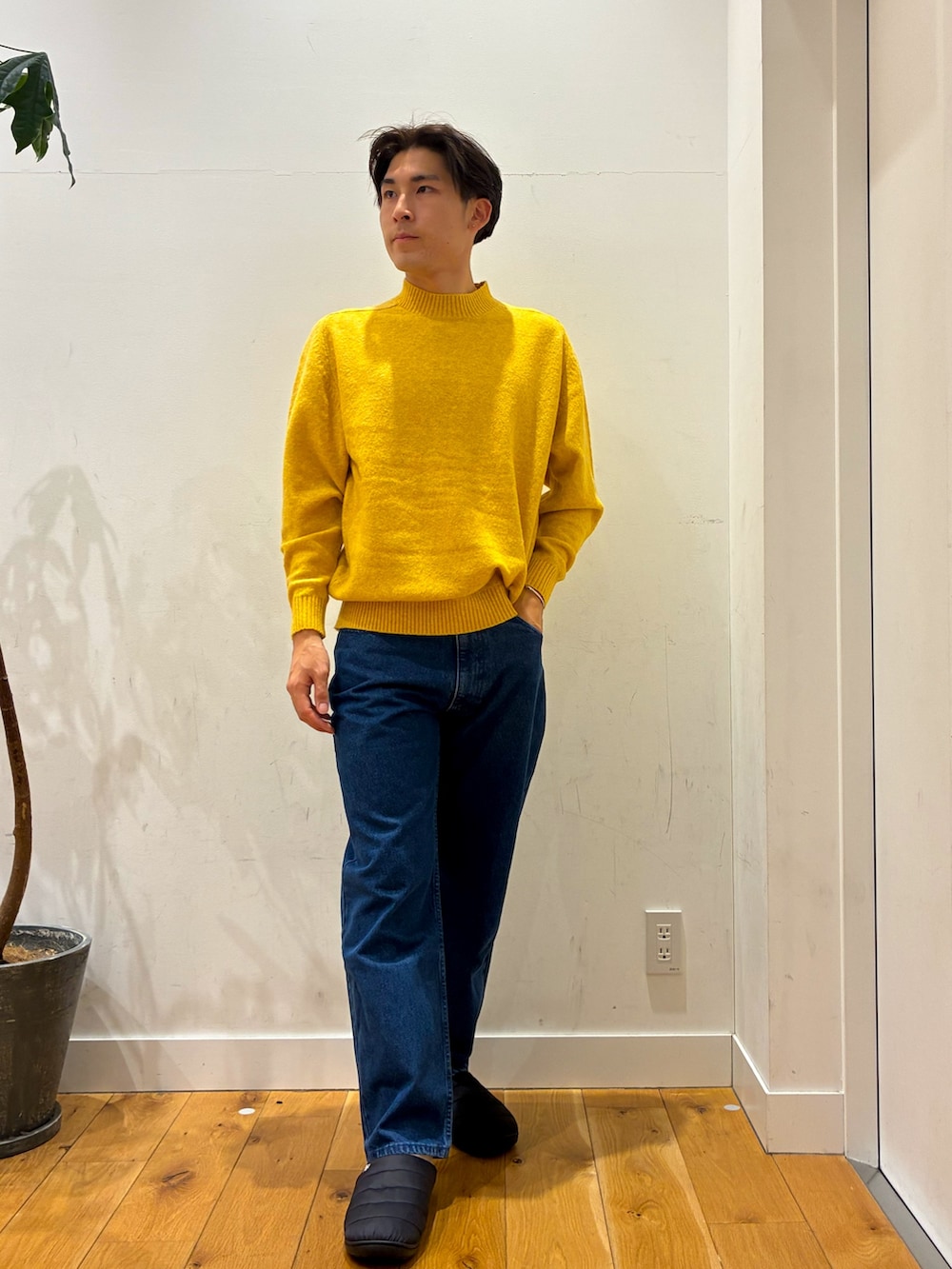 ブルゾンを脱いだ時には季節を感じられる色合いのセーターを着ているのでジーンズに合わせてみました!