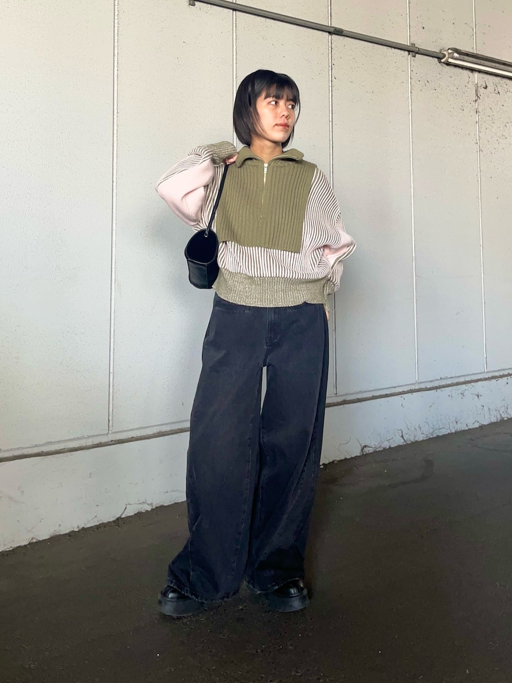 ハーフzipの1枚で可愛く着れるニットにスタイルアップするデニムを合わせてみました✨️