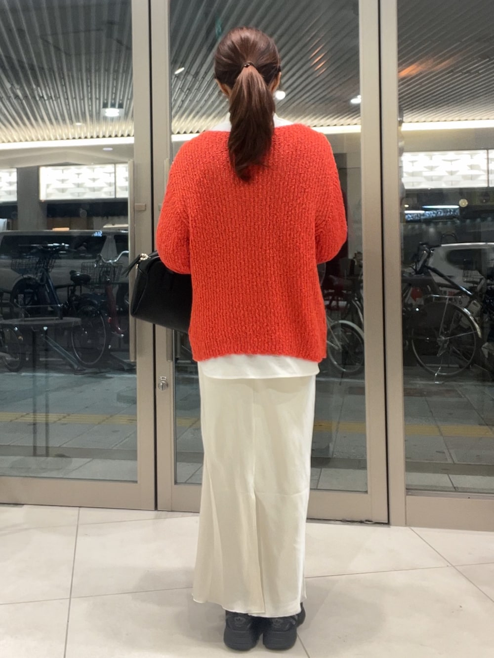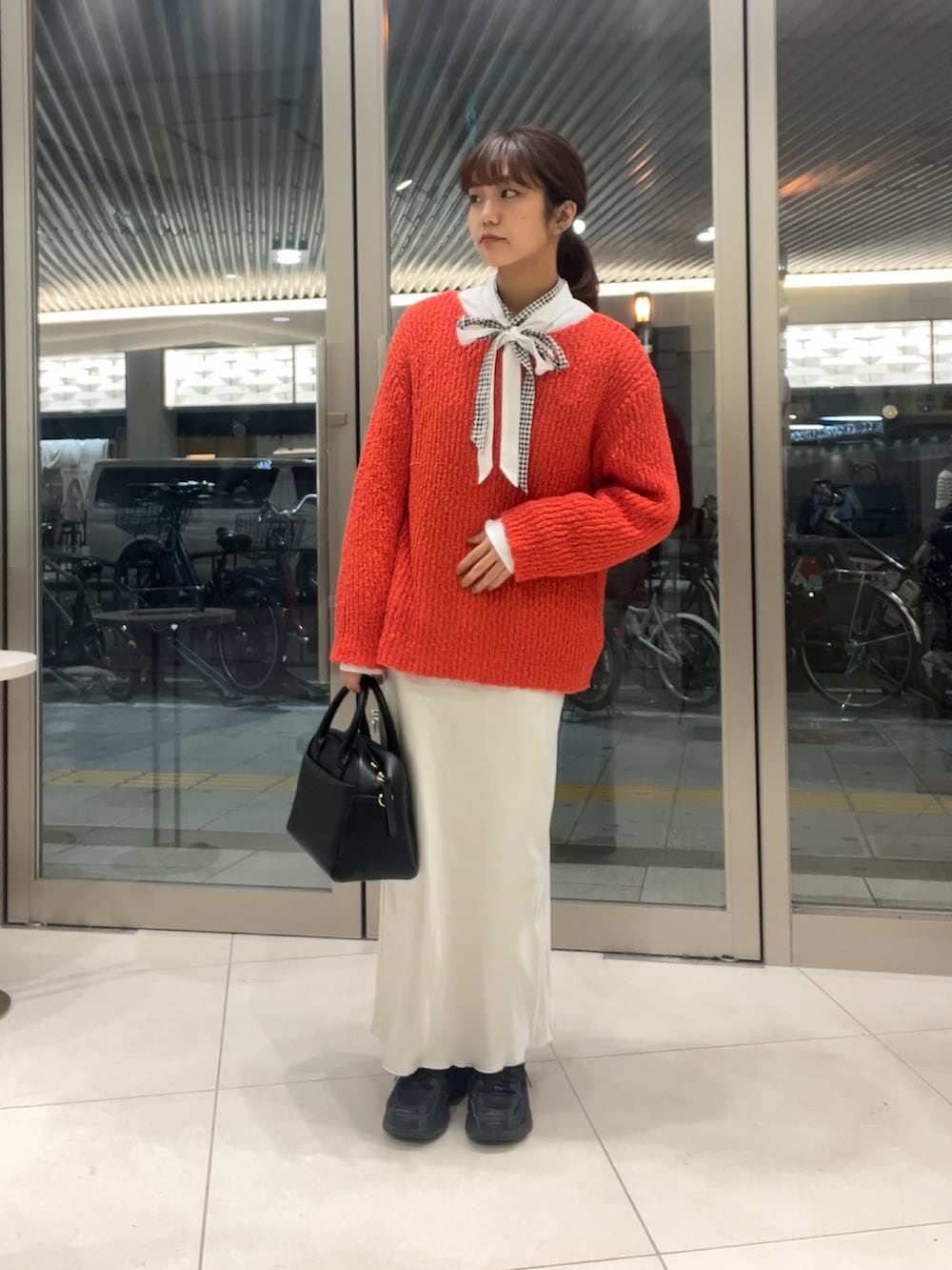 ポコポコルーズセーターとサテンナロースカートの組み合わせは店頭でも人気です🎶