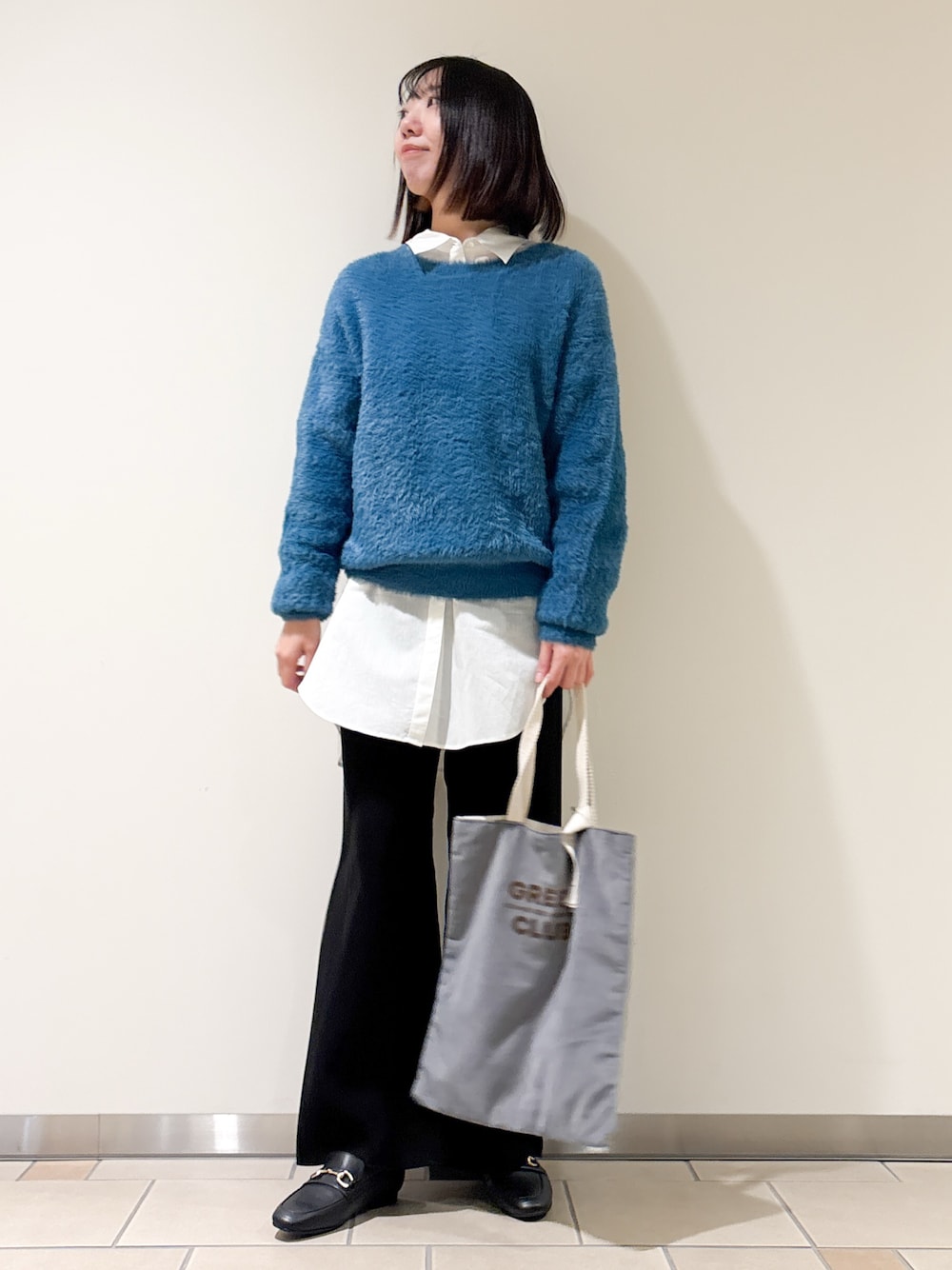 中には200日ニットと綺麗めパンツを合わせて通勤スタイルにしました!