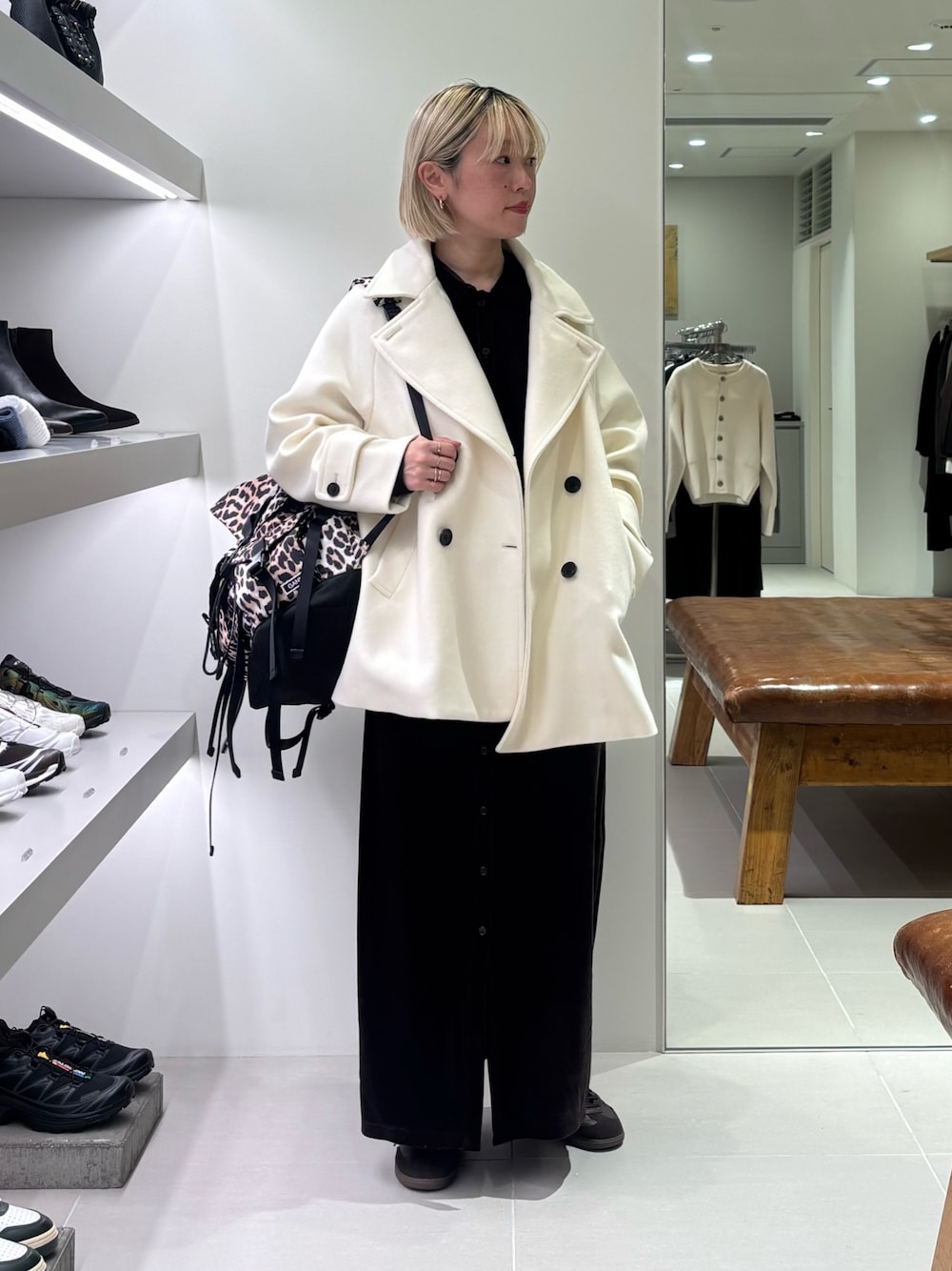 ややオーバーサイズなデザインはかっちりしすぎず、それでもキレイめなスタイリングに仕上げてくれます。
