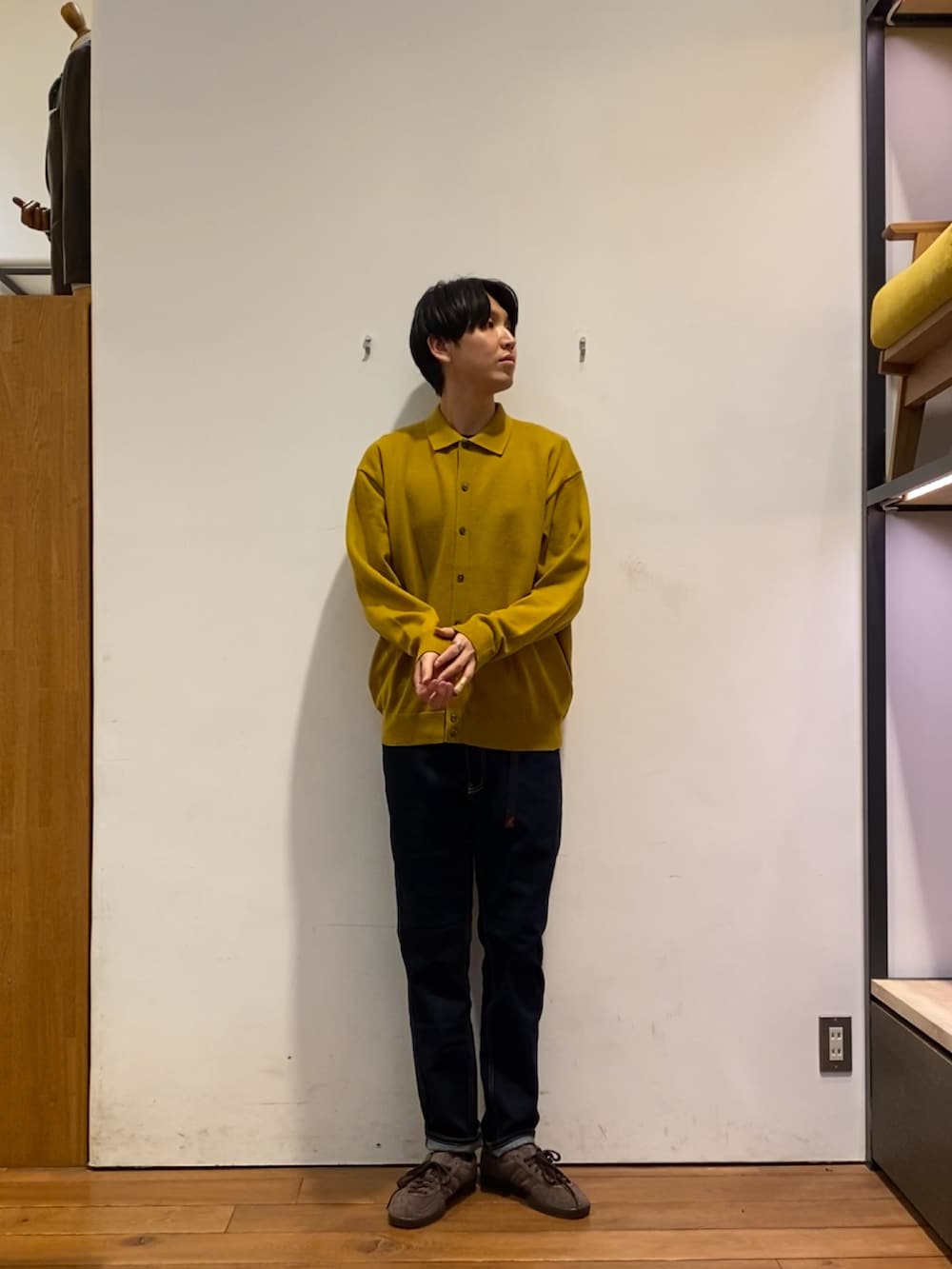 200日ニットシリーズからシャツカーディガンをインナーで使い、映えるコーディネートをしてみました!