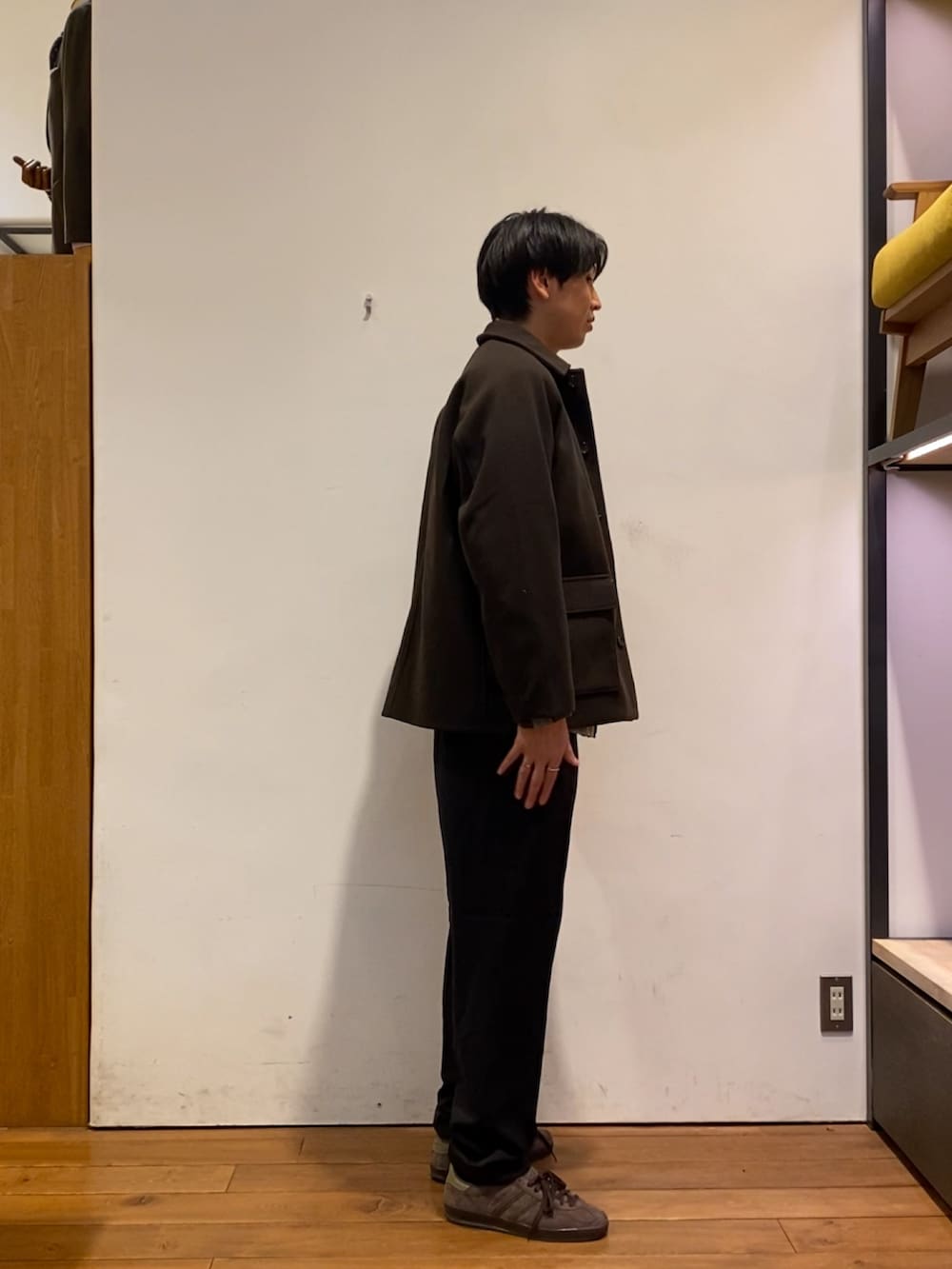 アウターはポリエステル素材なのですが肌触りが良く、品のある素材感で合わせやすいアイテムとなっています!