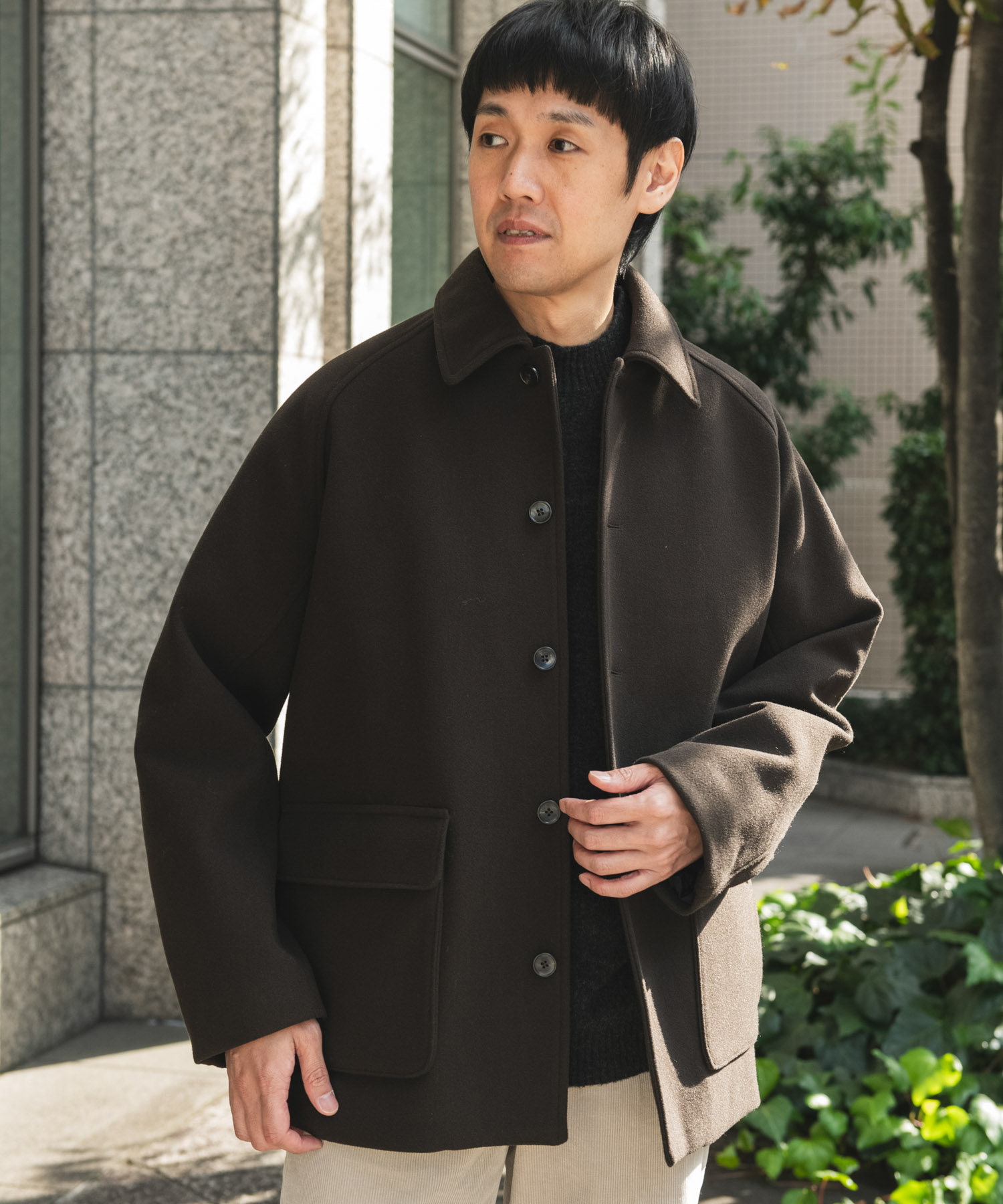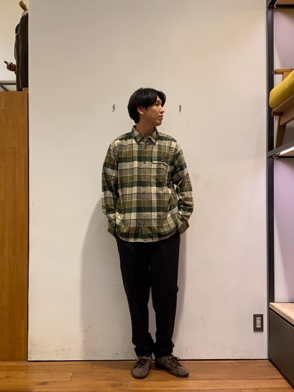 パタゴニアのチェックシャツをインナーに使ってショートコートを合わせたコーディネートです!