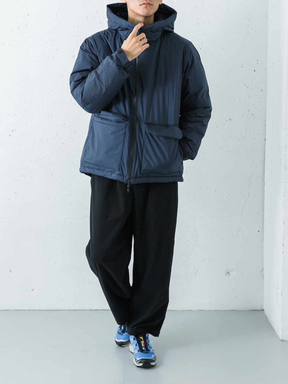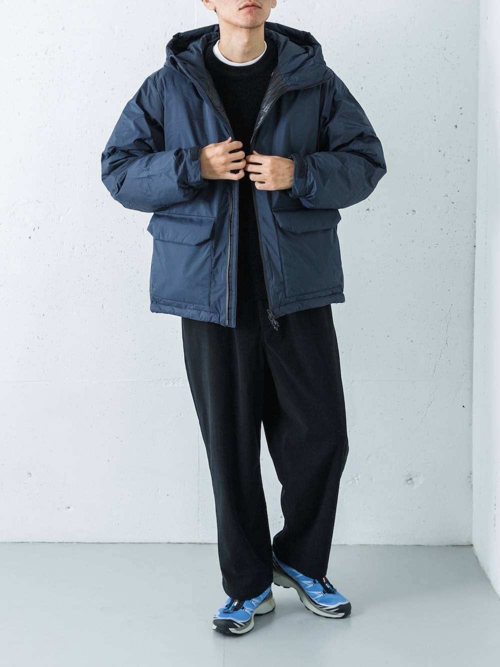 足元のSALOMONが全体を軽快に引き締め、都会的な冬のカジュアルスタイルを構築。