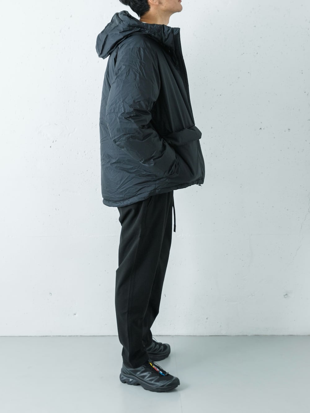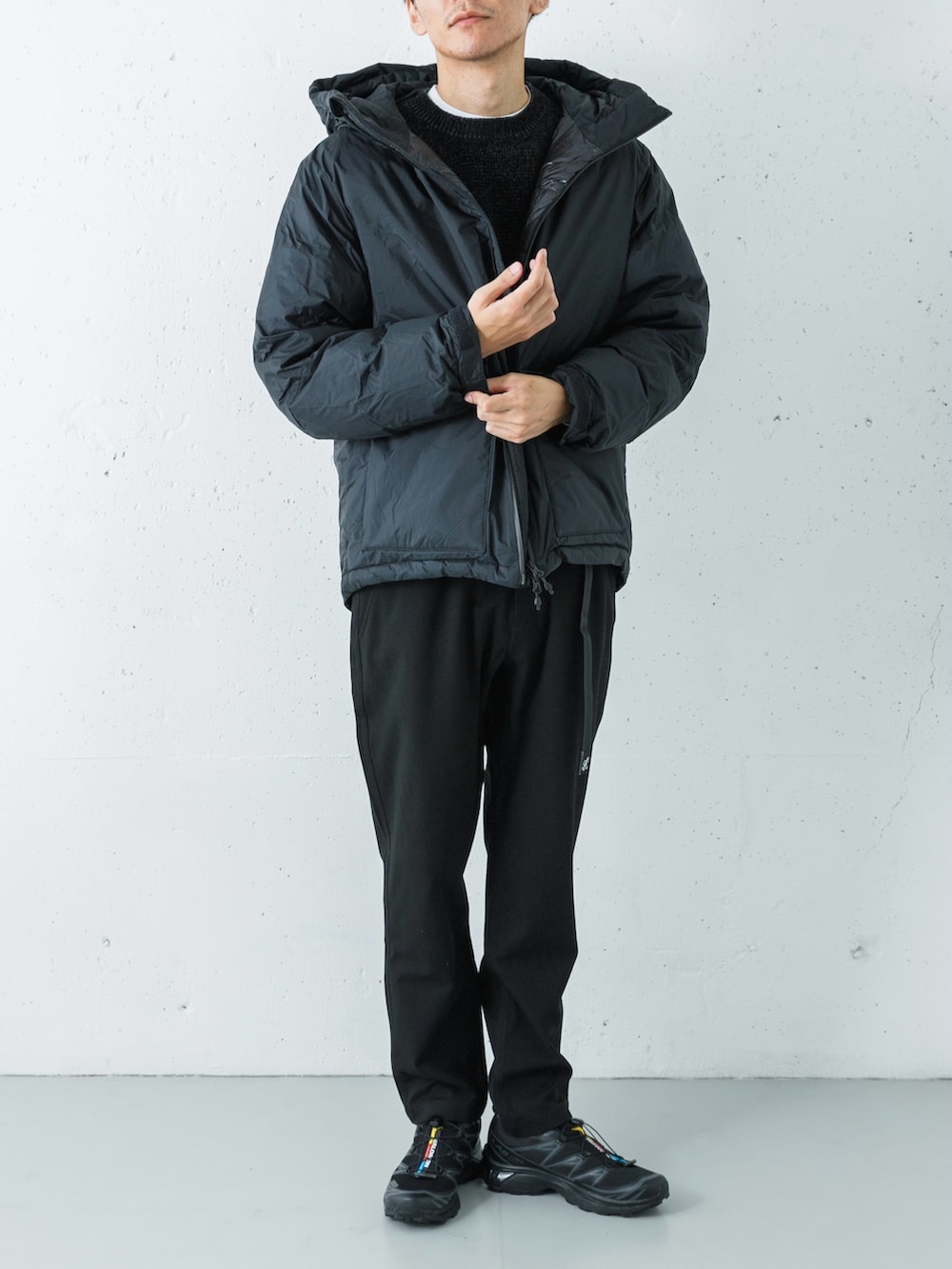 SALOMONの機能美が全体に軽快さを添える。