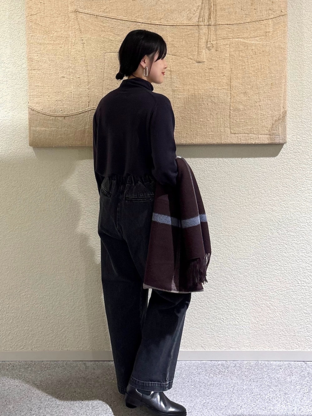 ・上半身をすっきりまとめることで、ショートコートのバランスが引き立ちます。