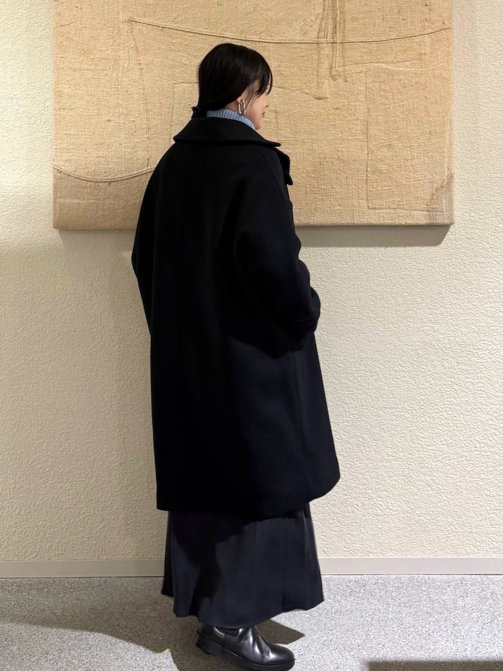 ・テントコートのボリュームとスカートの揺れ感で奥行きのあるシルエットに