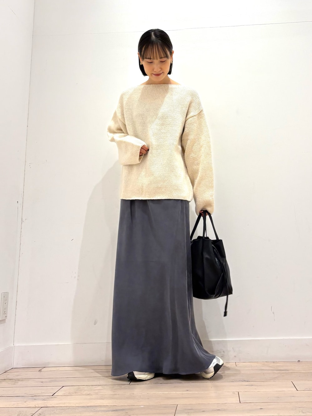 ゆるっとニット✖️落ち感のあるスッキリしたスカートとのバランスが◎です^ ^