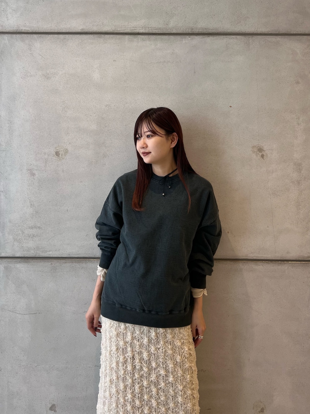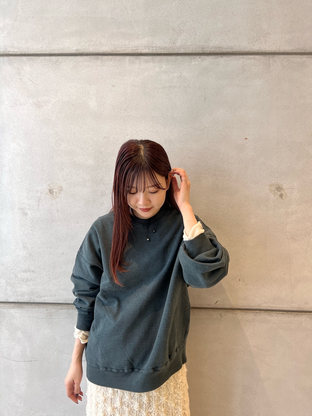 スウェットは身長163cmでMサイズを着用