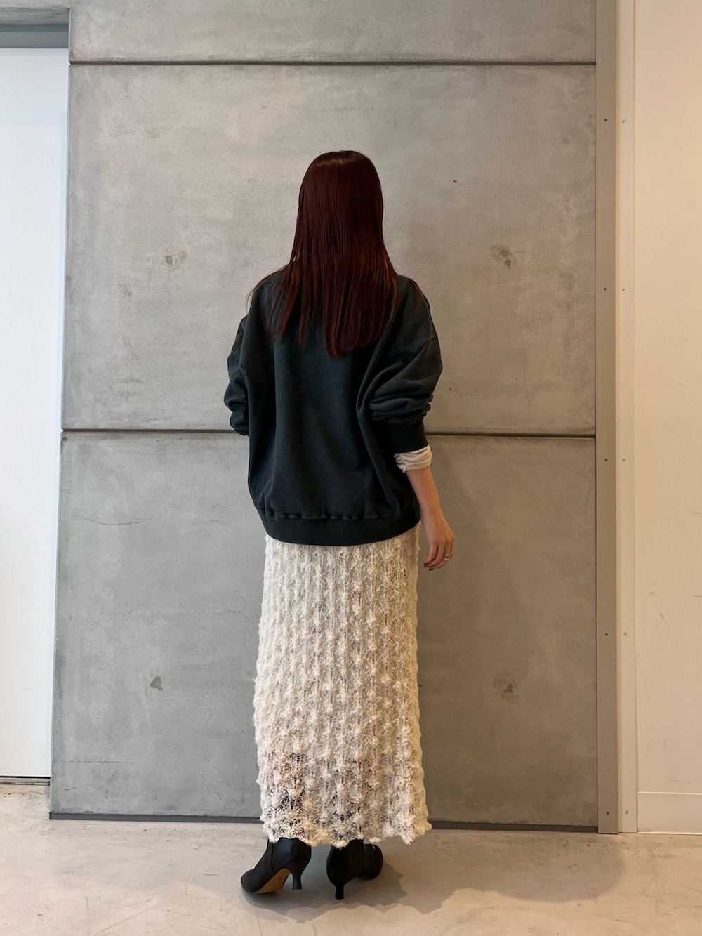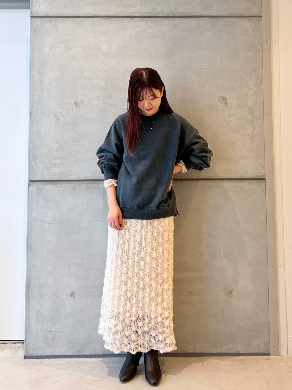 足元はブーツで締まりを出した合わせ。