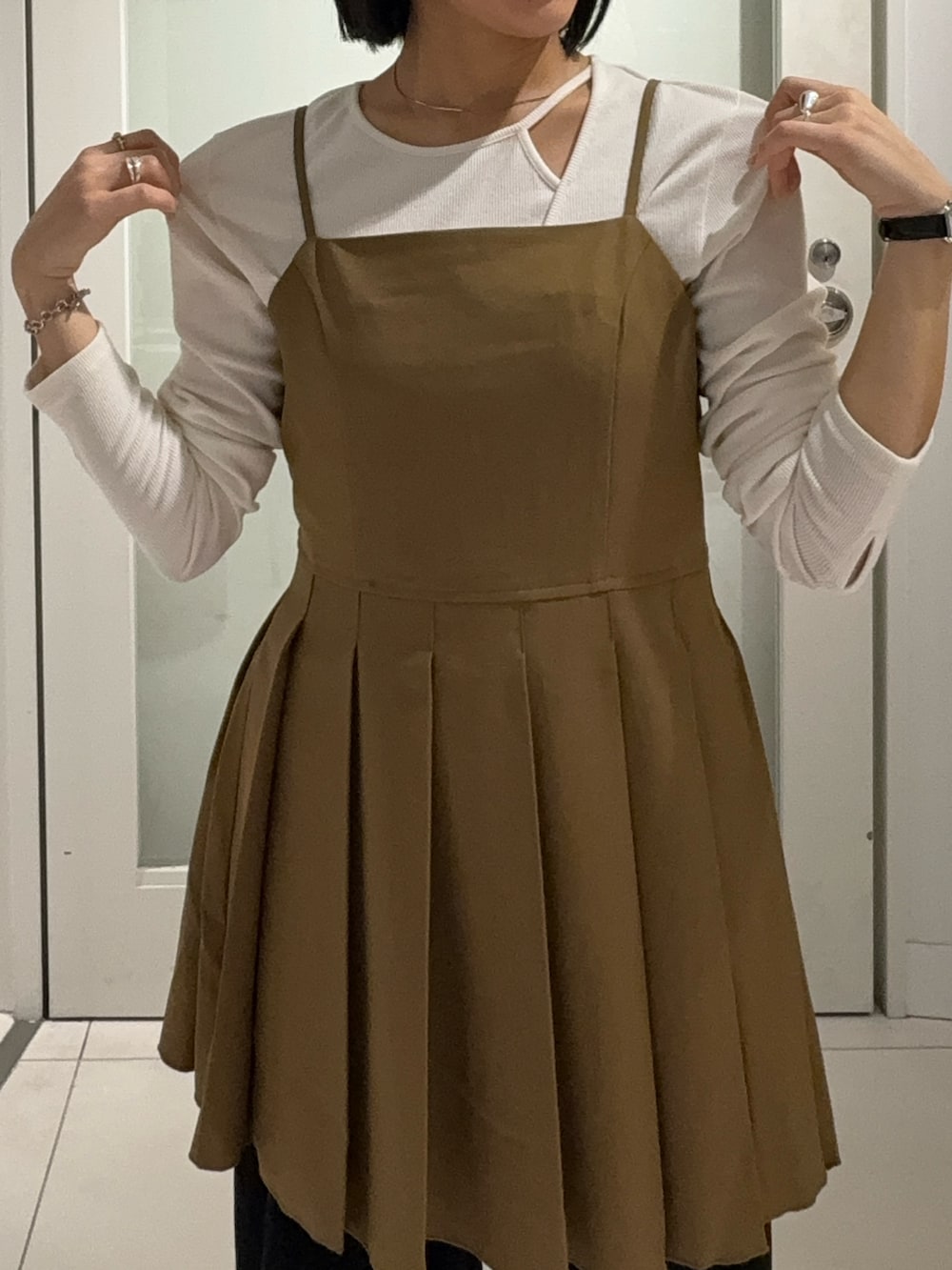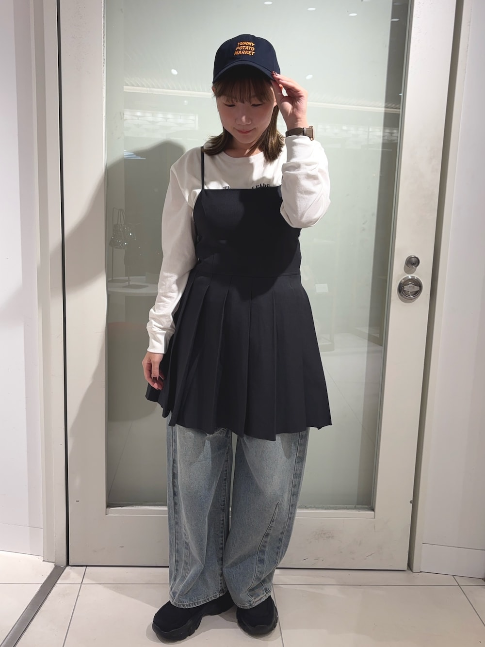 キャミワンピはショートパンツやロングブーツと合わせてもかわいい🥺♡