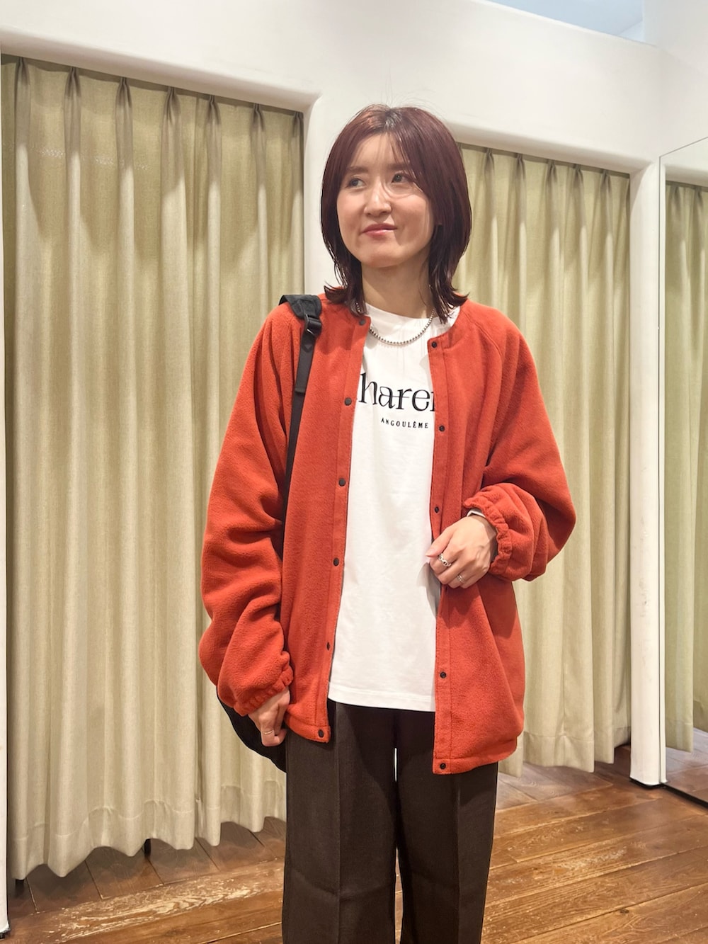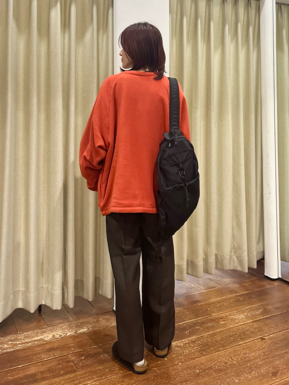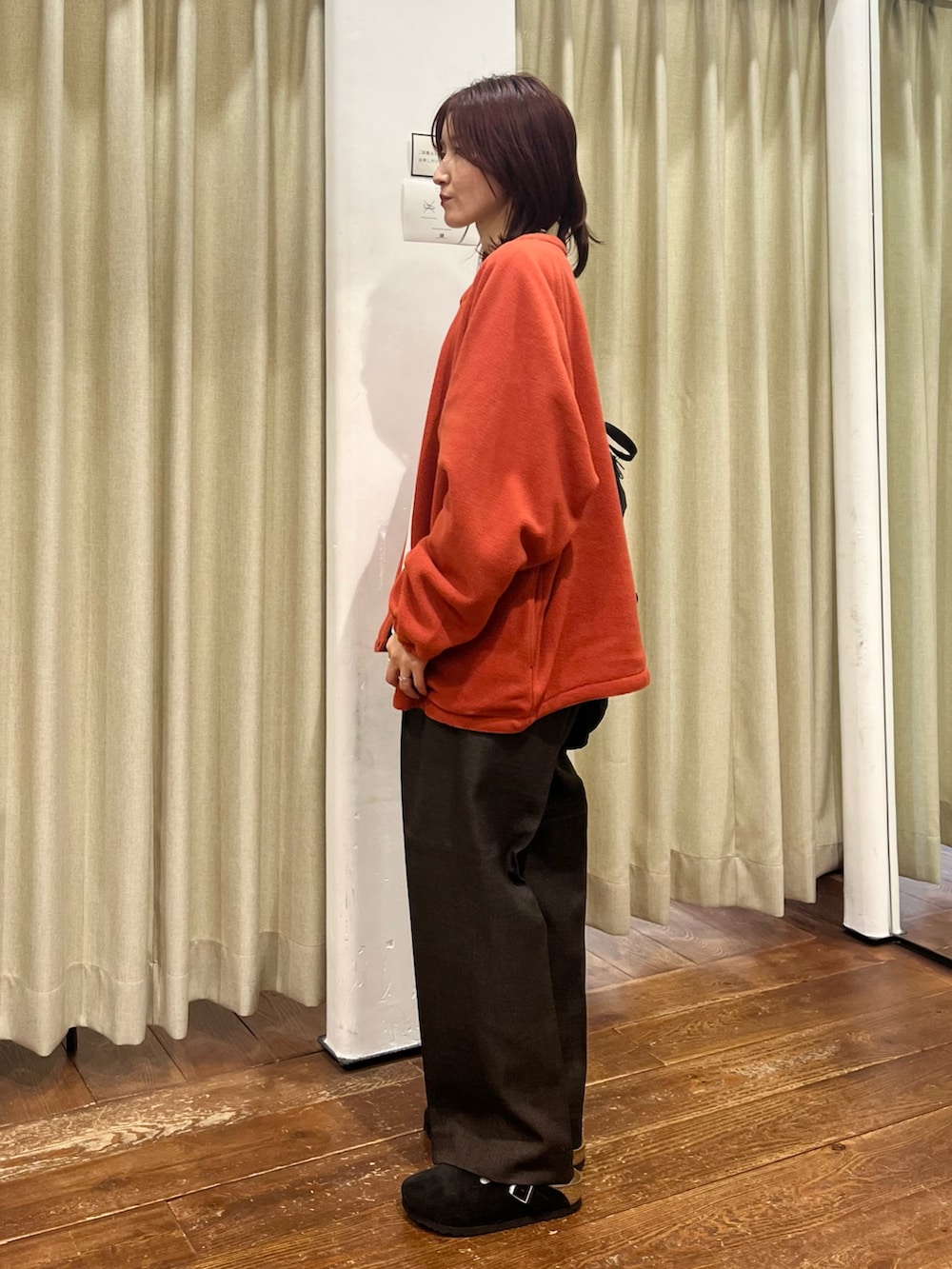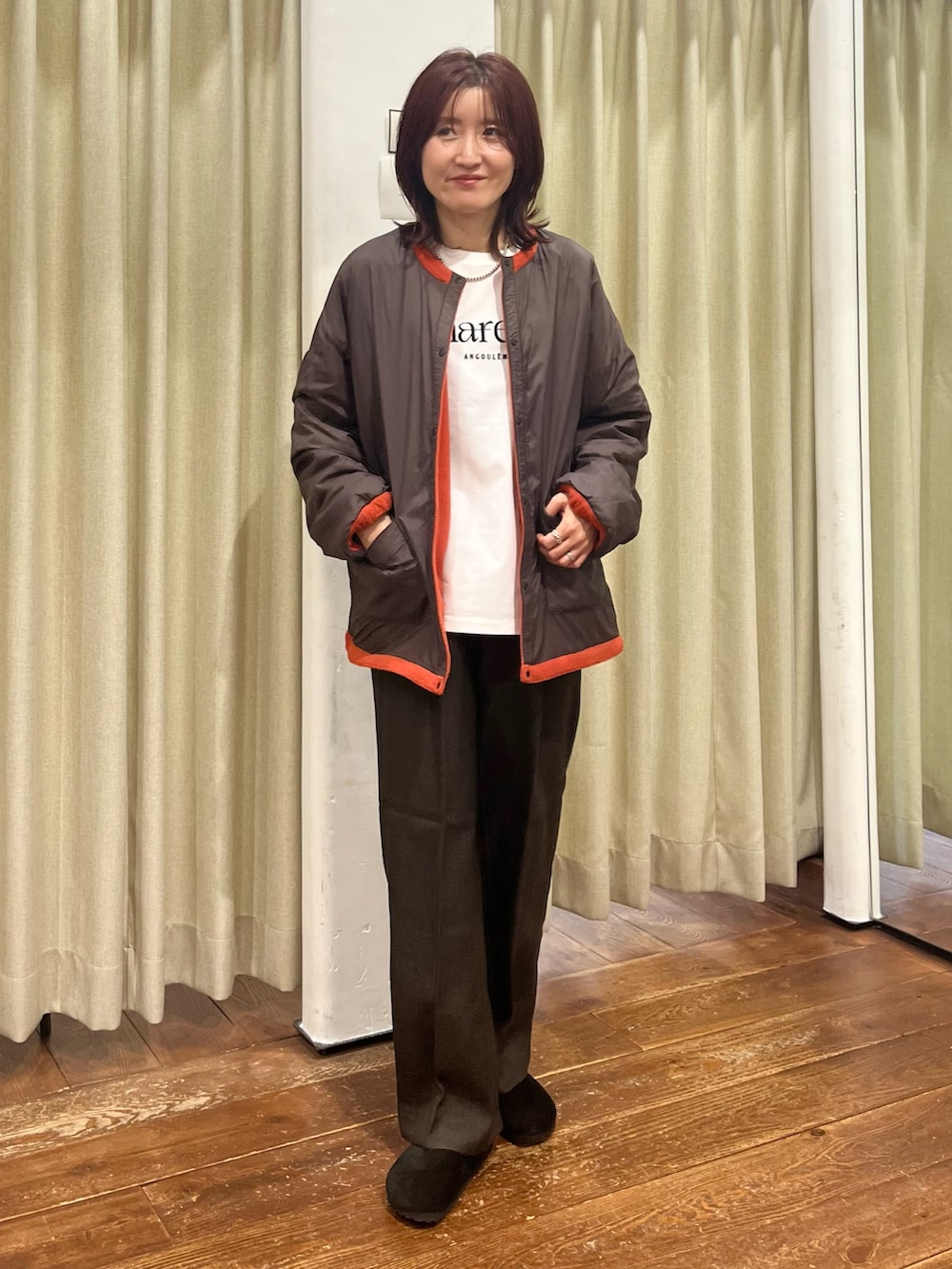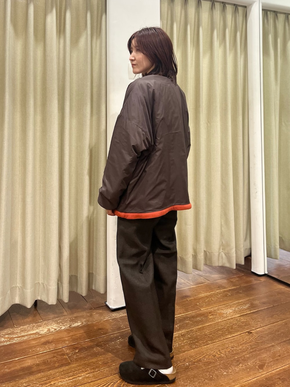 合わせたボトムスはウールライクでシワになりにくく、きれいめでもカジュアルにでも使えるのでおすすめです!サイズ1を着用しています。
