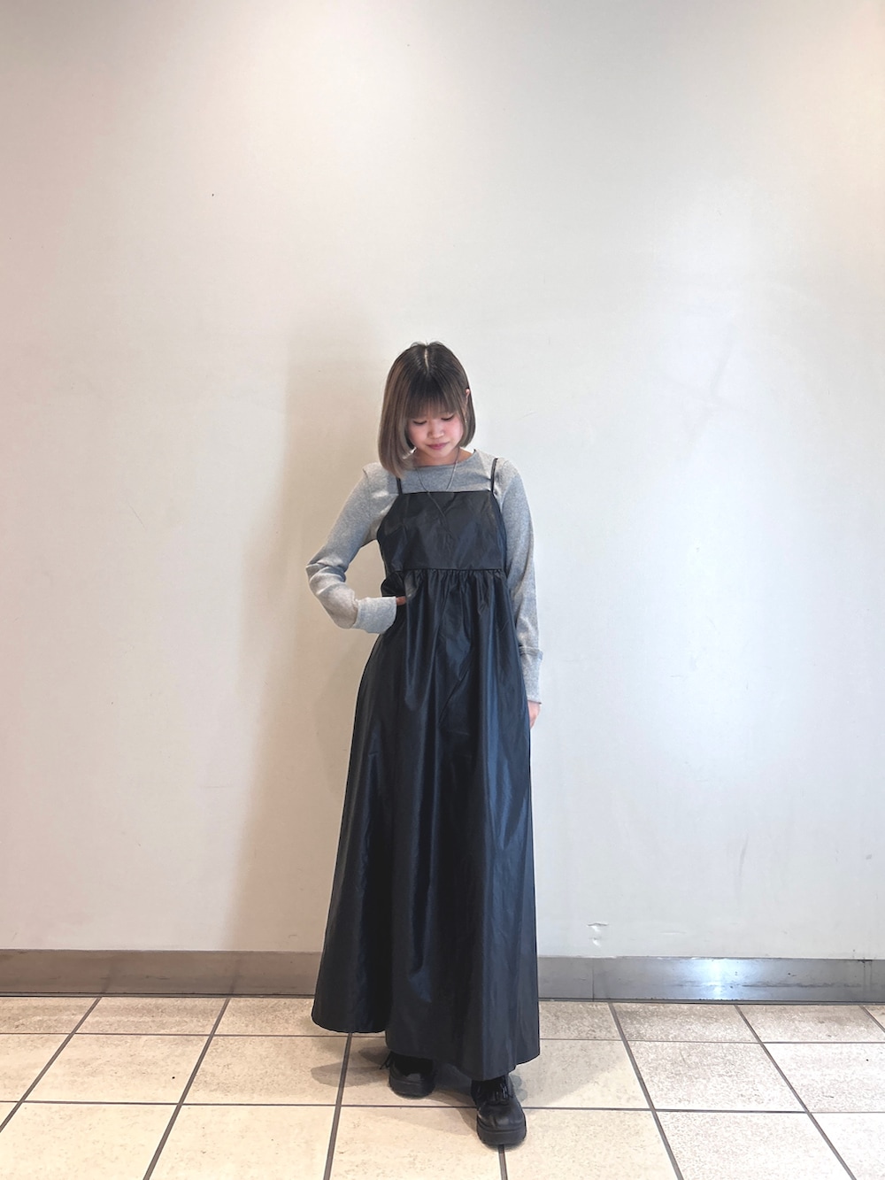 キャミワンピは生地がレザーになっていて一気にかっこよくこなれ感がでます!