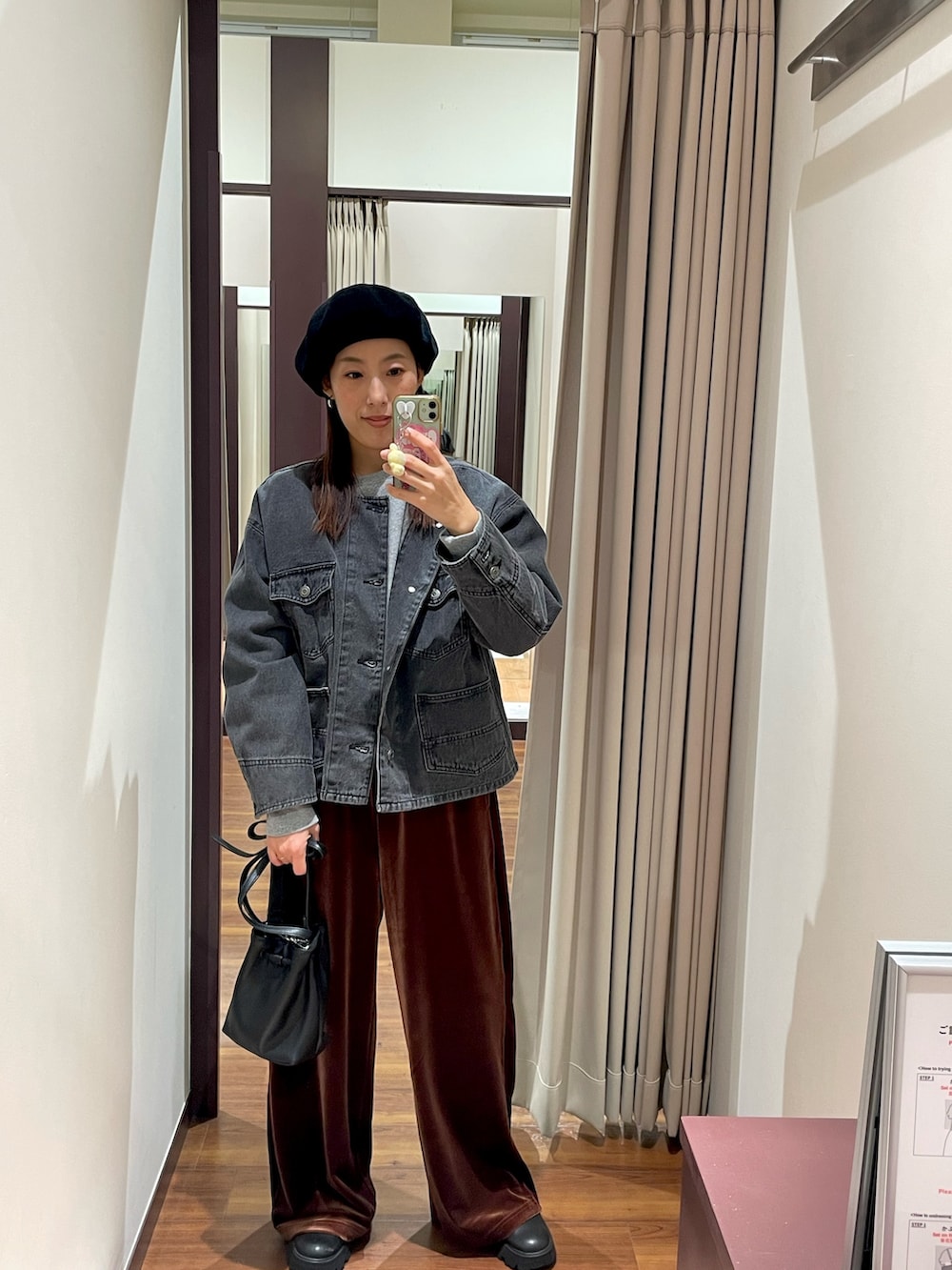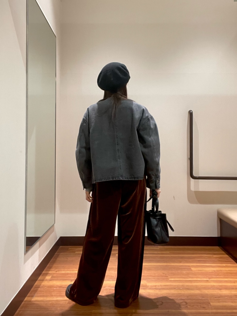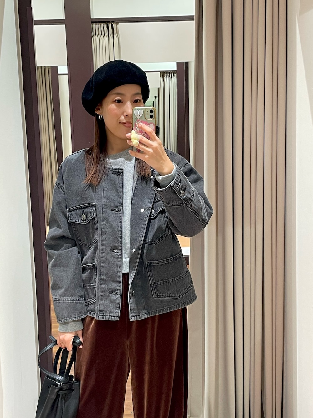 カジュアルになりがちなデニムですが、首まわりがすっきりすることでキレイめにもカジュアルにも合わせやすいです✨