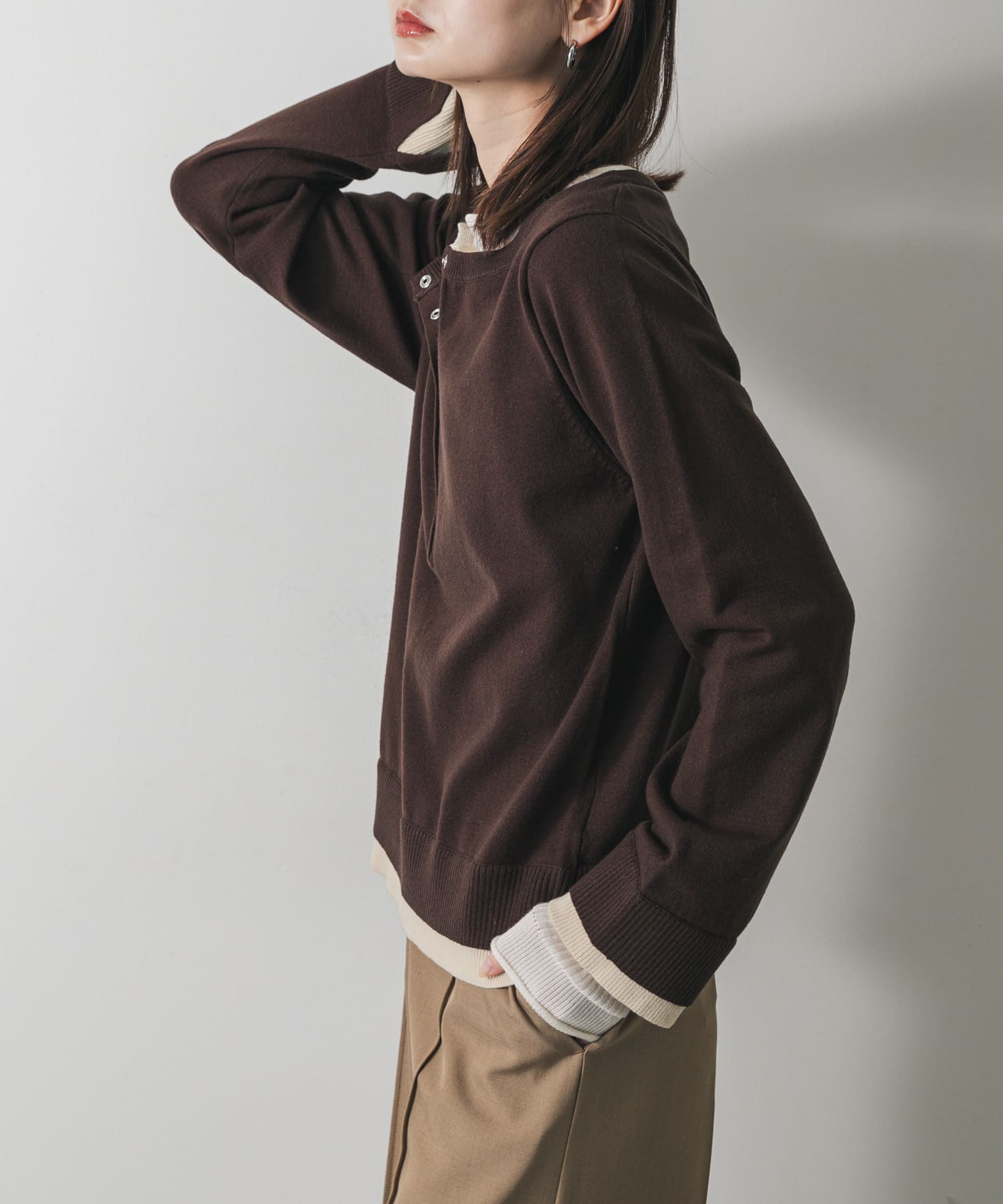 SENSE OF PLACEヘンリーネックレイヤードセーター- 着用カラー: