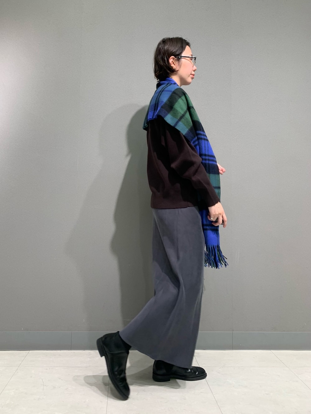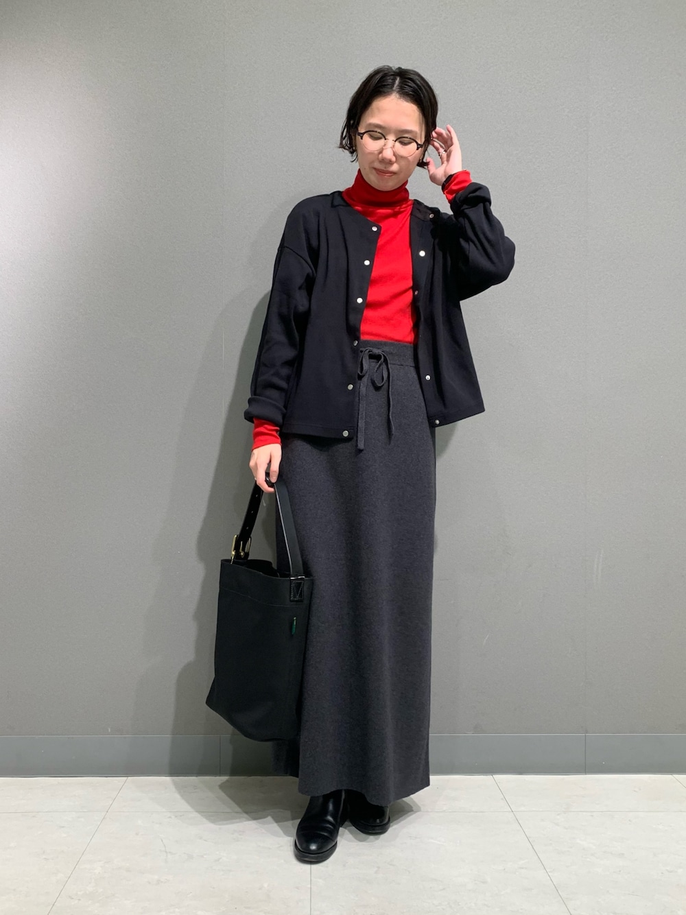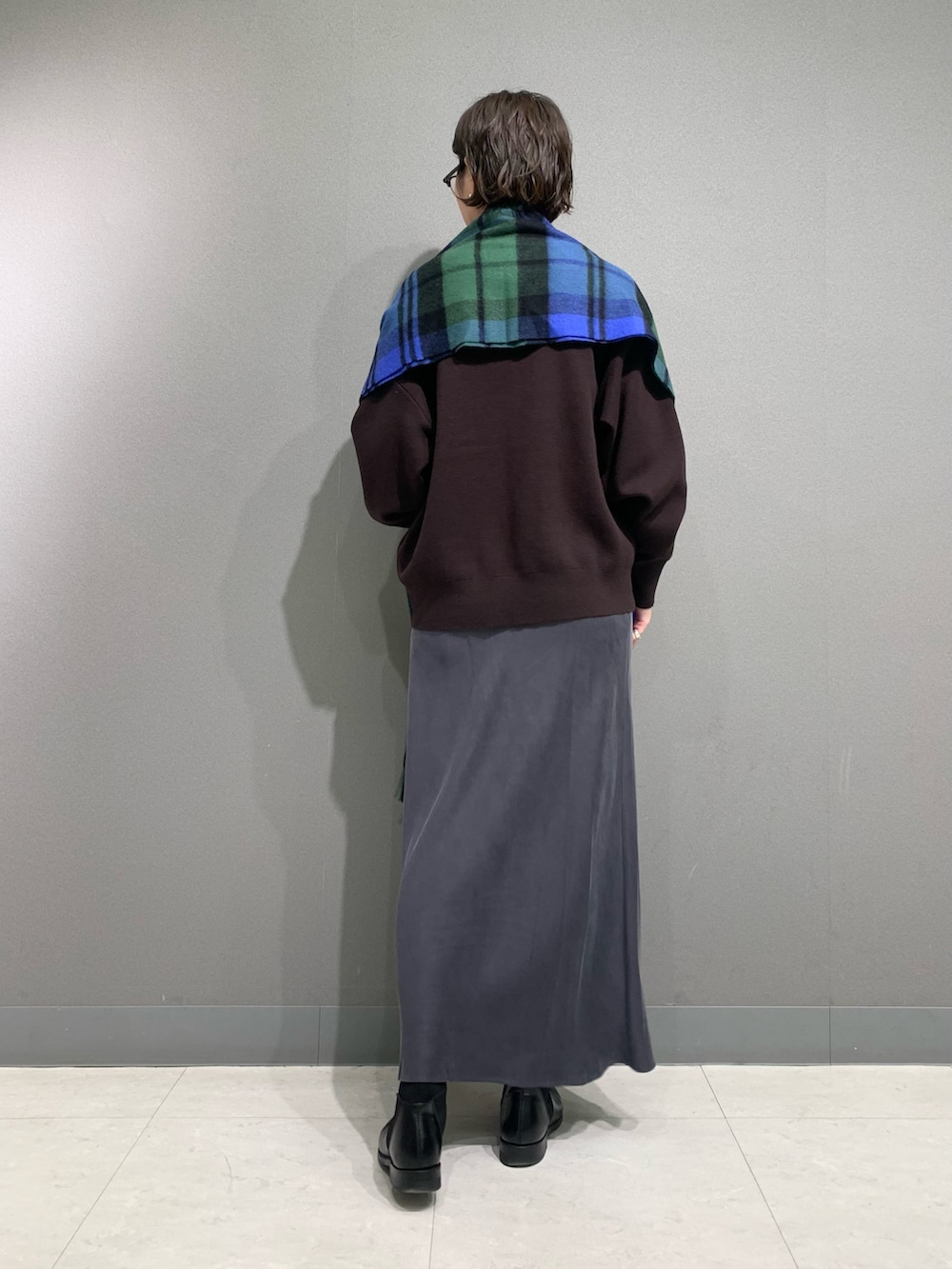 人気のキュプラスカートは少し地が厚くなって再登場しました。薄過ぎないので秋冬のニットやアウターともバランスが取りやすいです。絶妙なチャコールカラーは程よく色を差してくれます。