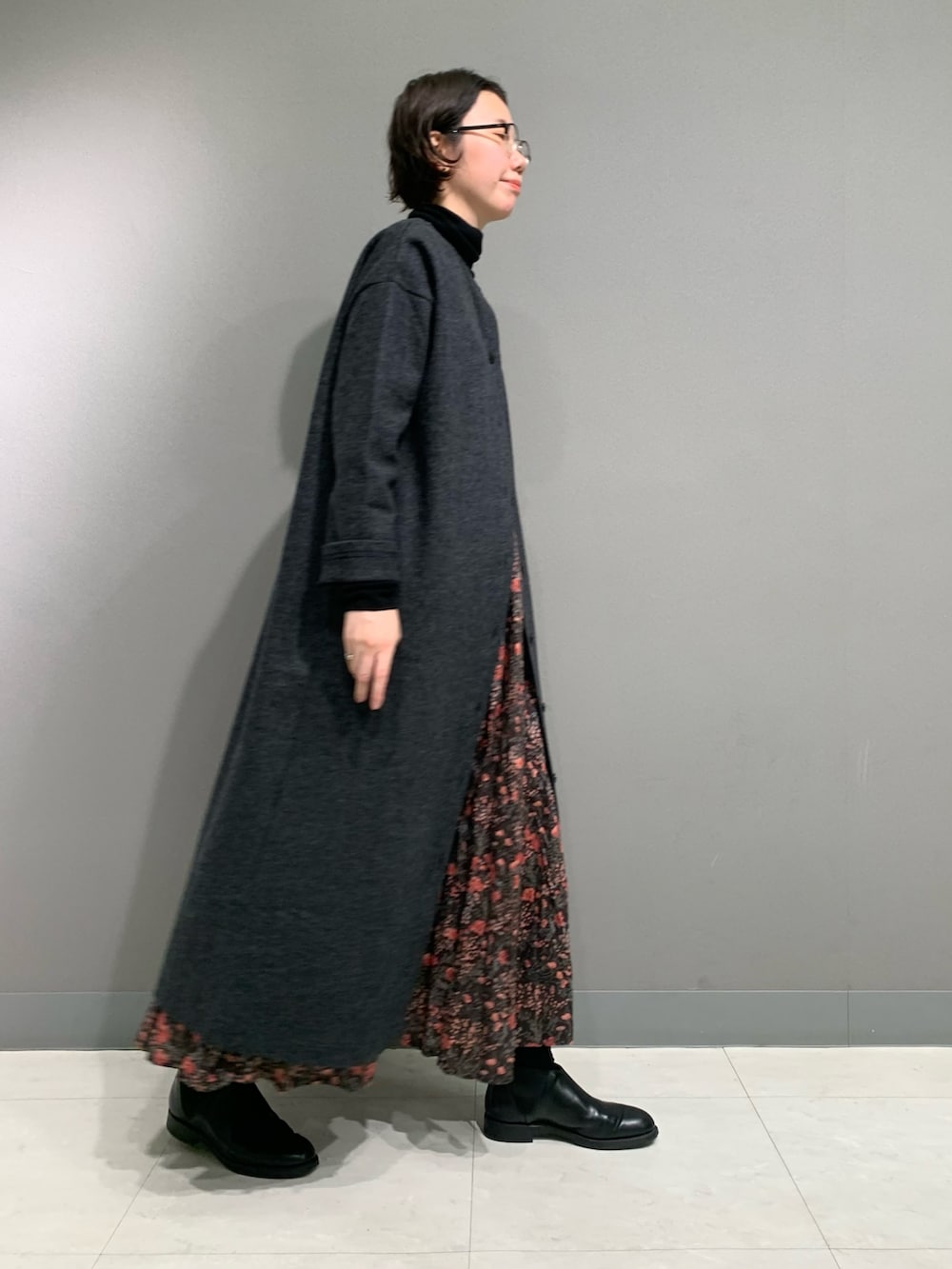 羽織でも一枚でも使えるワンピースは着丈が長過ぎず幅広い身長の方にお召しいただけます。肩は少し落ちていますがアームが細めなのでインナーは薄手な物の方が良さそうです。