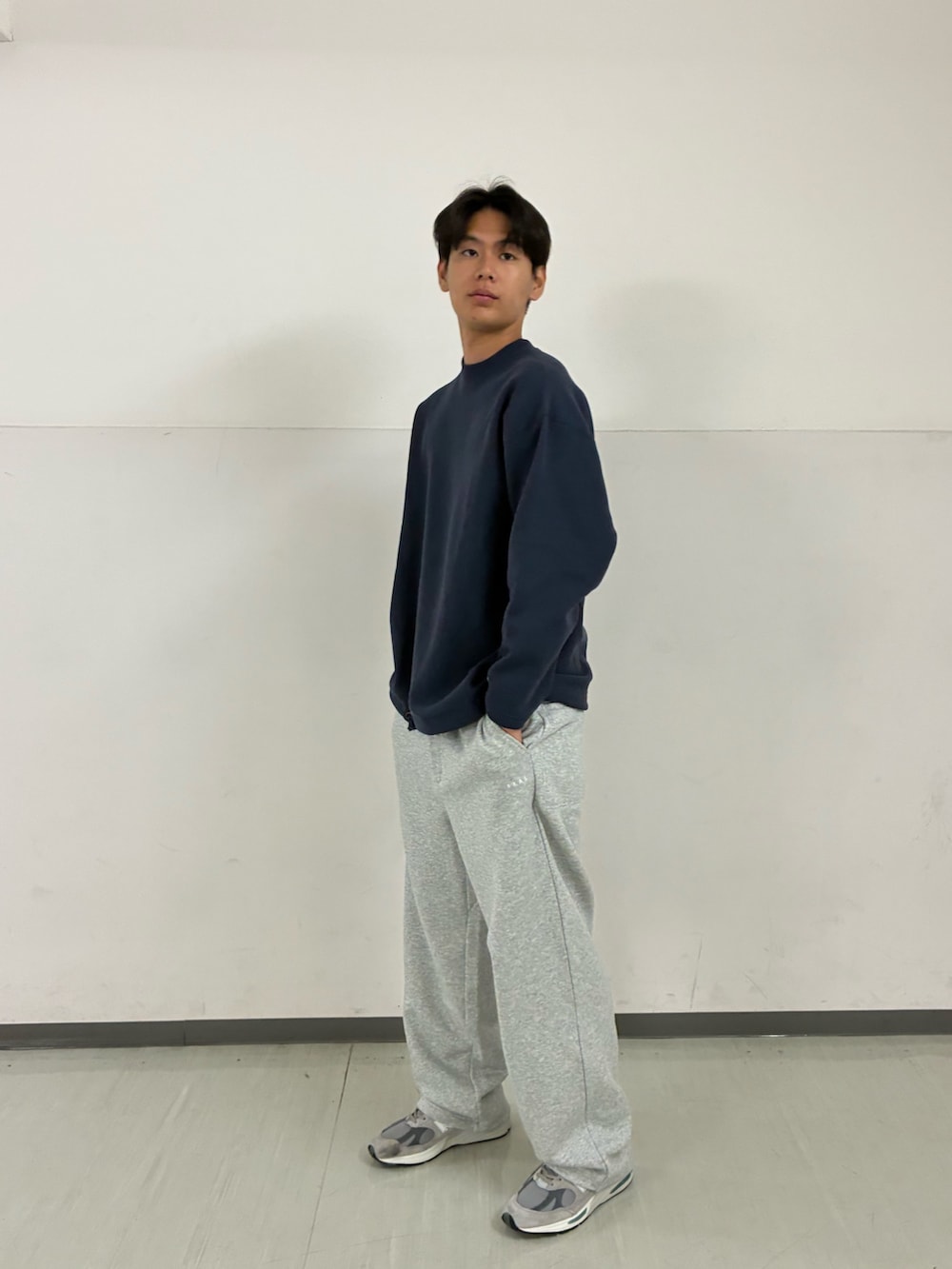 上下スウェットなのに、ラフすぎずまとまりがあるコーデにしてみました!